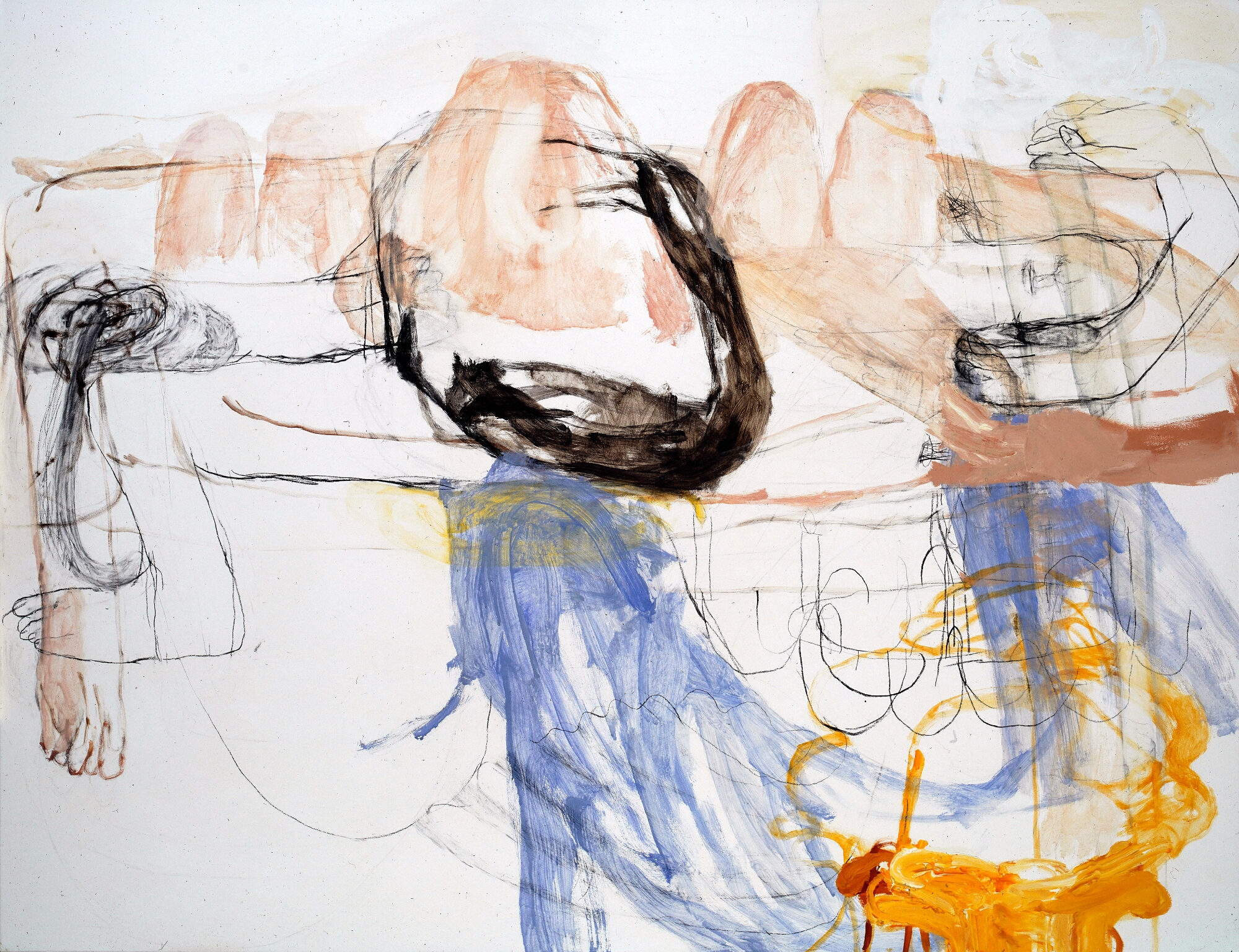 Aufsteigende, gehalten, Eitempera, Öl Kohle auf Leinwand, 200 x 153 cm, 1991  Wasserknöterich, Eitempera, Öl und Kohle auf Leinwand, 190 x 156 cm, 1991  Hochzeitsbild, Eitempera, Öl und Kohle auf Leinwand, 190 x 156 cm, 1989/1991  Lammträgerin, Eitempera, Öl und Kohle auf Leinwand, 200 x 156 cm, 1991  Agathe, umbrisch, Eitempera, Öl und Kohle auf Leinwand, 159 x 195 cm, 1991  Sandkuchenbild, Eitempera, Öl und Kohle auf Leinwand, 155 x 200 cm, 1991  Agathe, Bein nachziehend, Eitempera, Kohle, Öl auf Leinwand, 156 x 198cm, 1991  Bekehrung, Eitempera, Öl und Kohle auf Leinwand, 156 x 200 cm, 1991  Lagernde, bestuckt, Eitempera, Öl auf Leinwand, 155 x 200 cm, 1991  Leda, badend, Eitempera, Kohle, Öl auf Leinwand, 155 x 200 cm, 1991 19921990