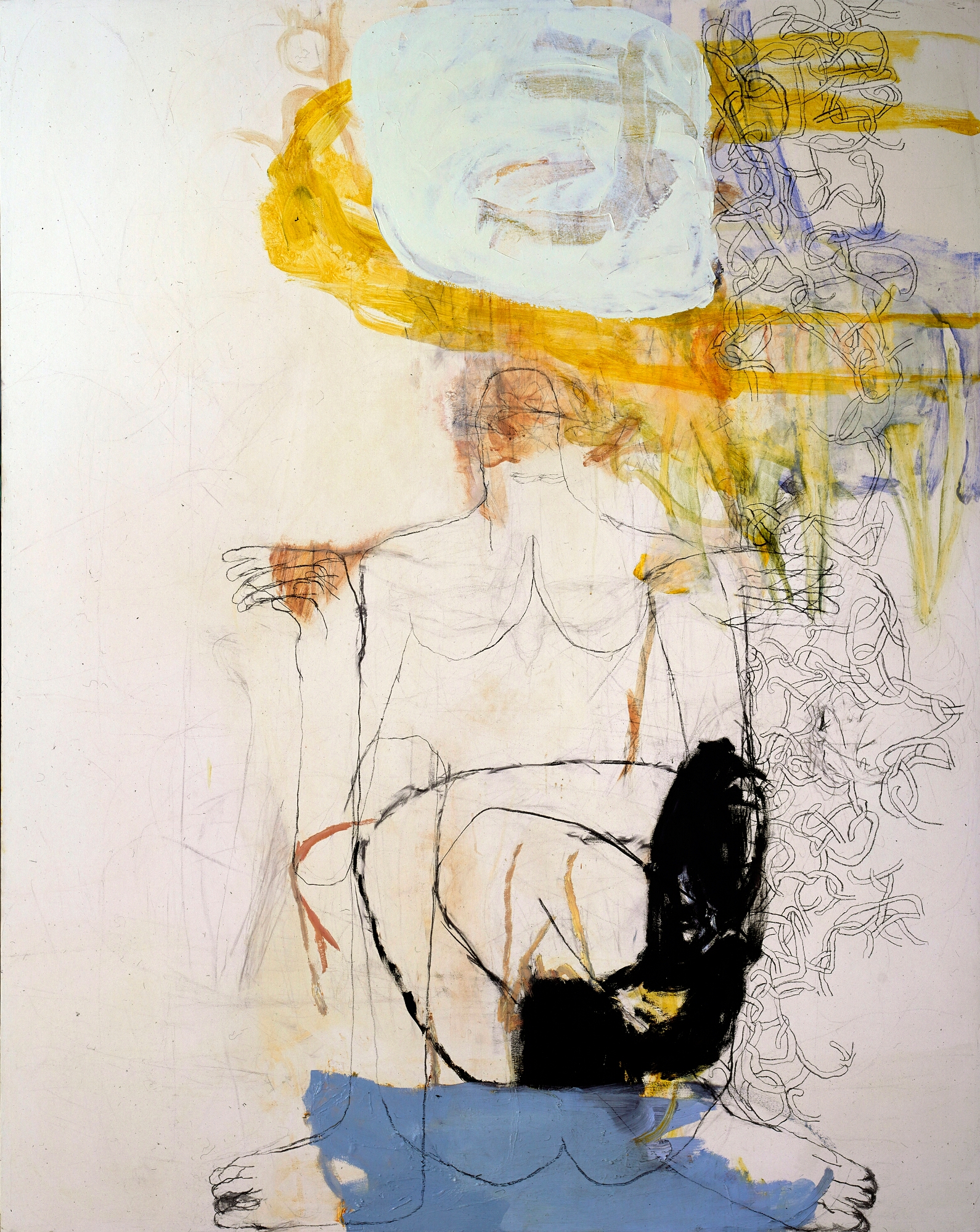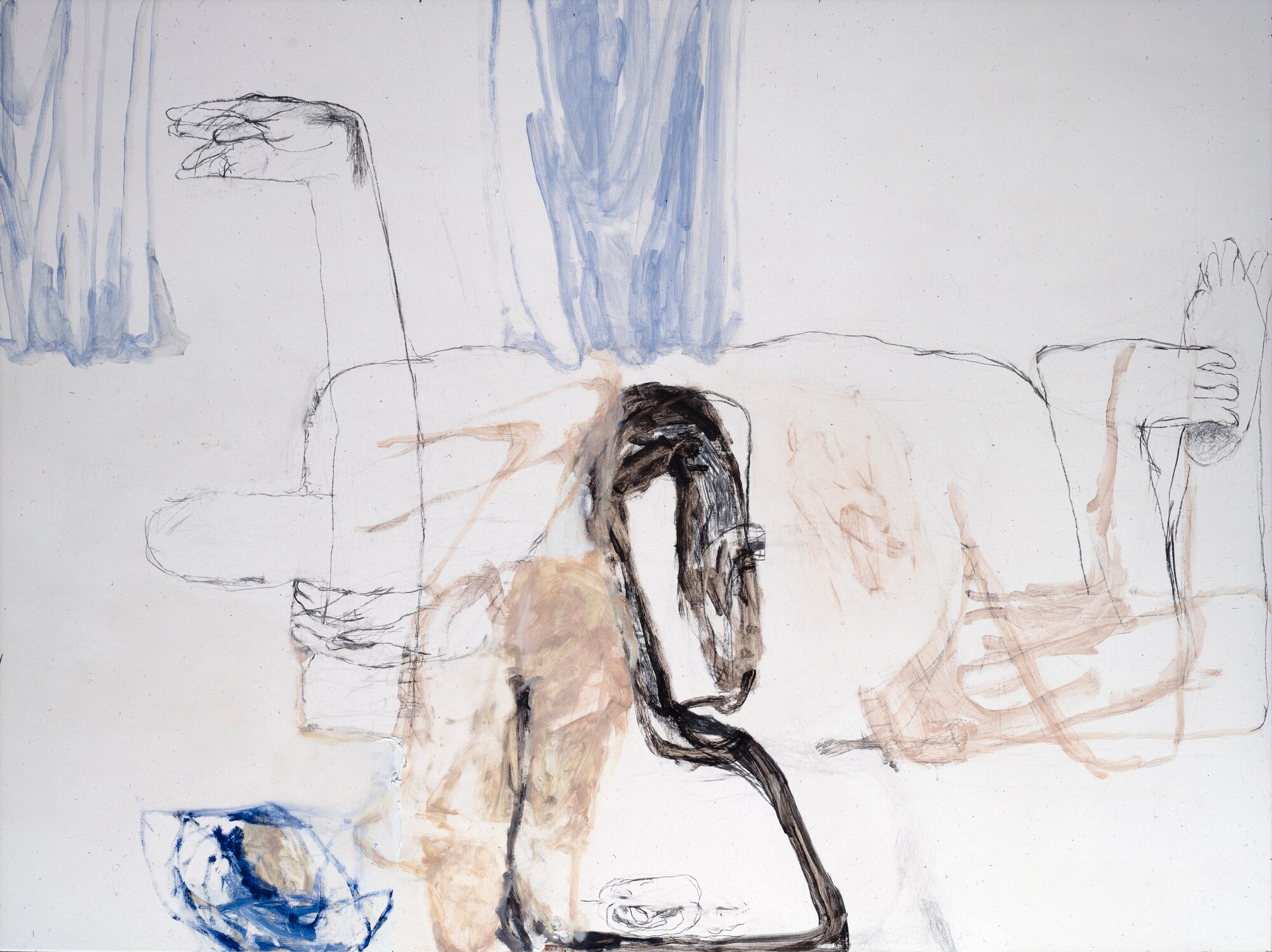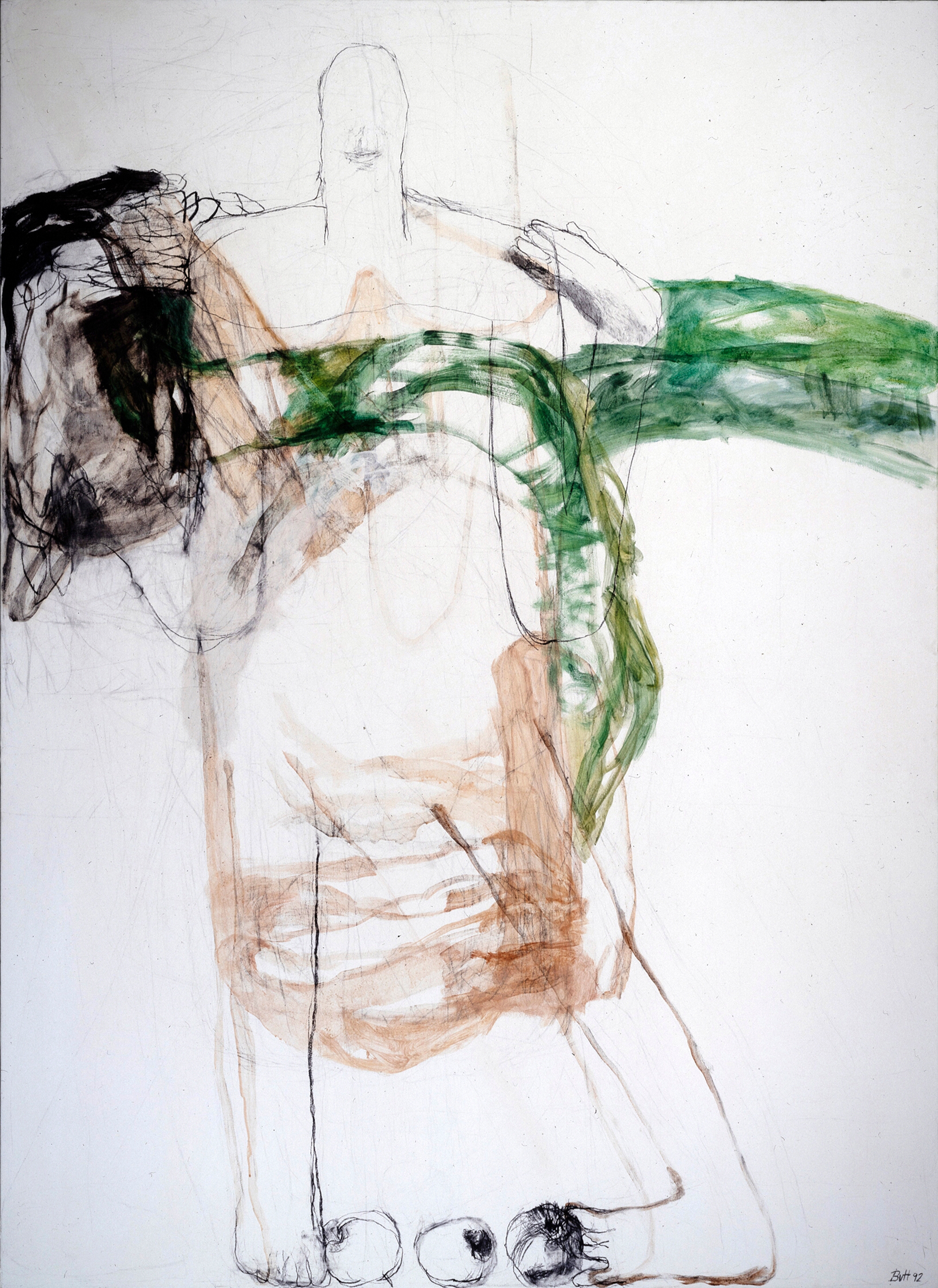Wickelzone, Eitempera, Kohle, Öl auf Leinwand, 154 x 186 cm, 1990/1992  Urteil des Paris (anders), Eitempera, Kohle, Öl auf Leinwand, 210 x 155 cm, 1992  Spülung (Taube entfernt), Eitempera, Öl und Kohle auf Leinwand, 195 x 155 cm, 1991/1992  Selbstverkündung, Eitempera, Kohle, Öl auf Leinwand, 200 x 155 cm, 1992  Eva, zugedeckt, Eitempera, Öl auf Leinwand, 200 x 155 cm, 1991/1992  Badende, Eitempera, Öl auf Leinwand, 156 x 195 cm, 1992  Horizontversuch, Eitempera, Öl und Kohle auf Leinwand, 150 x 200 cm, 1992  Maria, entleert, Öl und Kohle auf Leinwand, 150 x 200 cm, 1992  Entschuppung (türkisches Bad), Eitempera, Kohle, Öl auf Leinwand, 200 x 150 cm, 1992  o.T., Eitempera, Kohle, Öl auf Leinwand, 200 x 150 cm, 1992  Brütemde, mit Lilie, Eitempera, Kohle, Öl auf Leinwand, 159 x 195 cm, 1992  Auswaschung, Eitempera, Kohle, Öl auf Leinwand, 155 x 210 cm, 1992  Auf Bettvorleger, Eitempera, Kohle, Öl auf Leinwand, 155 x 210 cm, 1992 19931991