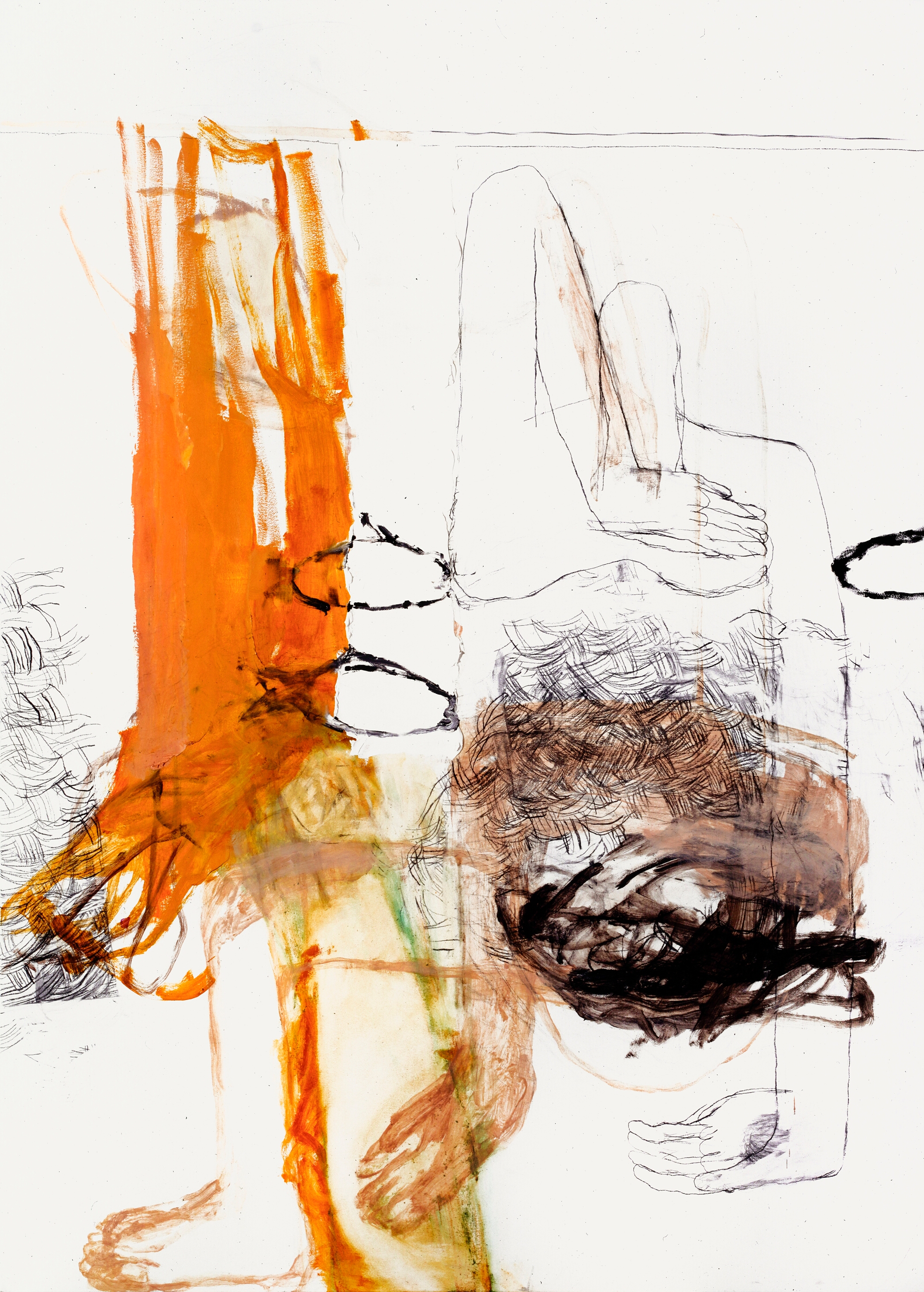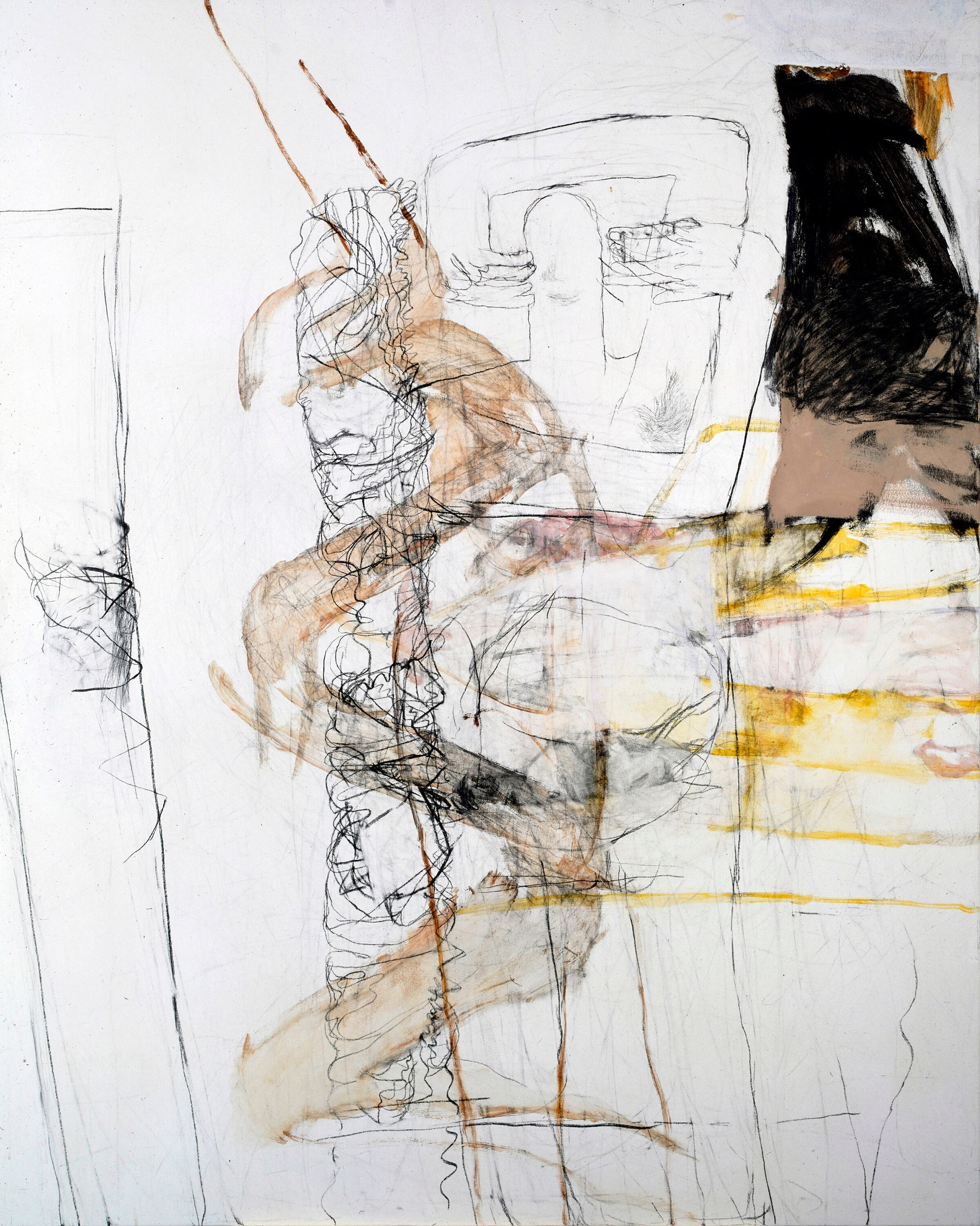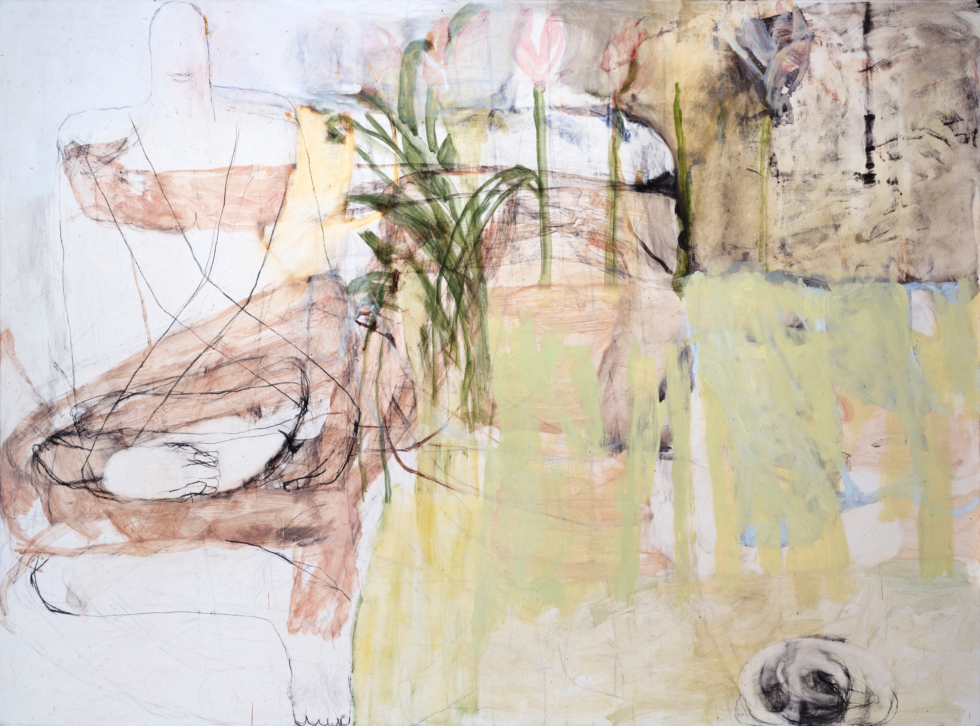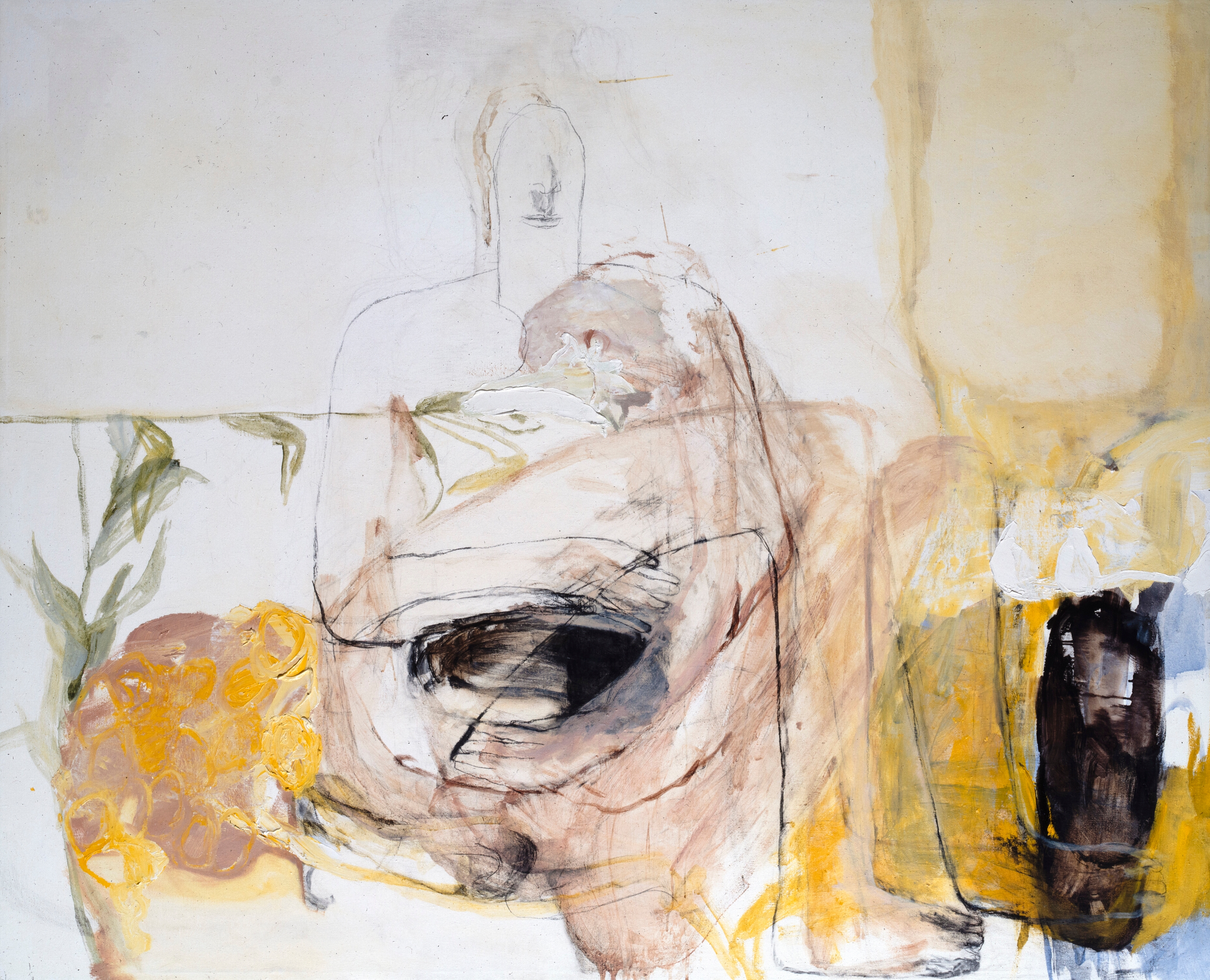 Wickelzone, Eitempera, Kohle, Öl auf Leinwand, 154 x 186 cm, 1990/1992  Urteil des Paris (anders), Eitempera, Kohle, Öl auf Leinwand, 210 x 155 cm, 1992  Spülung (Taube entfernt), Eitempera, Öl und Kohle auf Leinwand, 195 x 155 cm, 1991/1992  Selbstverkündung, Eitempera, Kohle, Öl auf Leinwand, 200 x 155 cm, 1992  Eva, zugedeckt, Eitempera, Öl auf Leinwand, 200 x 155 cm, 1991/1992  Badende, Eitempera, Öl auf Leinwand, 156 x 195 cm, 1992  Horizontversuch, Eitempera, Öl und Kohle auf Leinwand, 150 x 200 cm, 1992  Maria, entleert, Öl und Kohle auf Leinwand, 150 x 200 cm, 1992  Entschuppung (türkisches Bad), Eitempera, Kohle, Öl auf Leinwand, 200 x 150 cm, 1992  o.T., Eitempera, Kohle, Öl auf Leinwand, 200 x 150 cm, 1992  Brütemde, mit Lilie, Eitempera, Kohle, Öl auf Leinwand, 159 x 195 cm, 1992  Auswaschung, Eitempera, Kohle, Öl auf Leinwand, 155 x 210 cm, 1992  Auf Bettvorleger, Eitempera, Kohle, Öl auf Leinwand, 155 x 210 cm, 1992 19931991