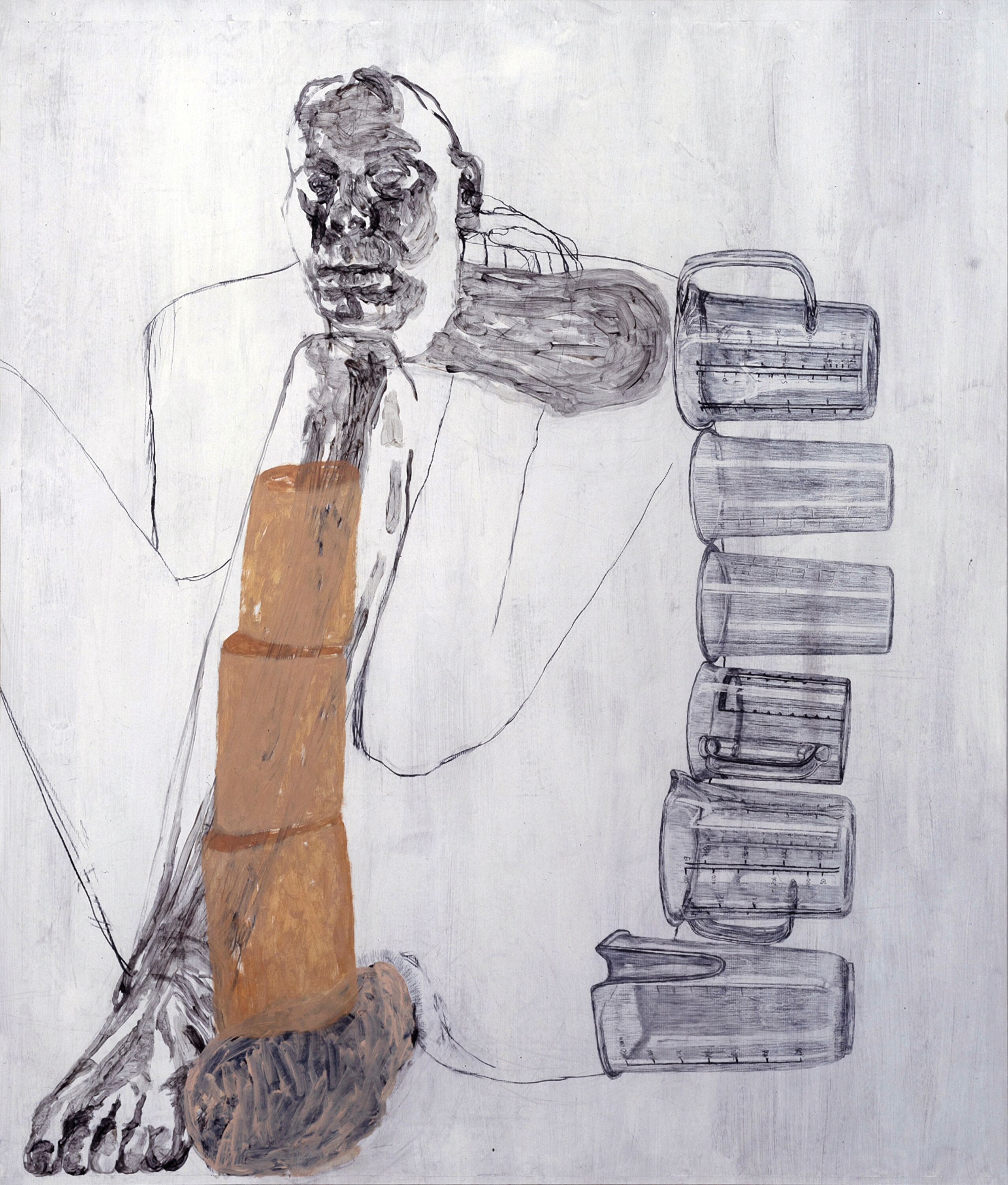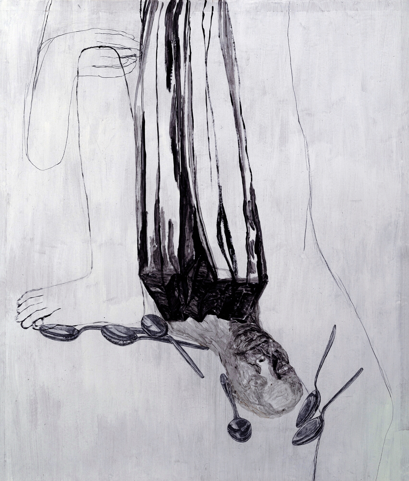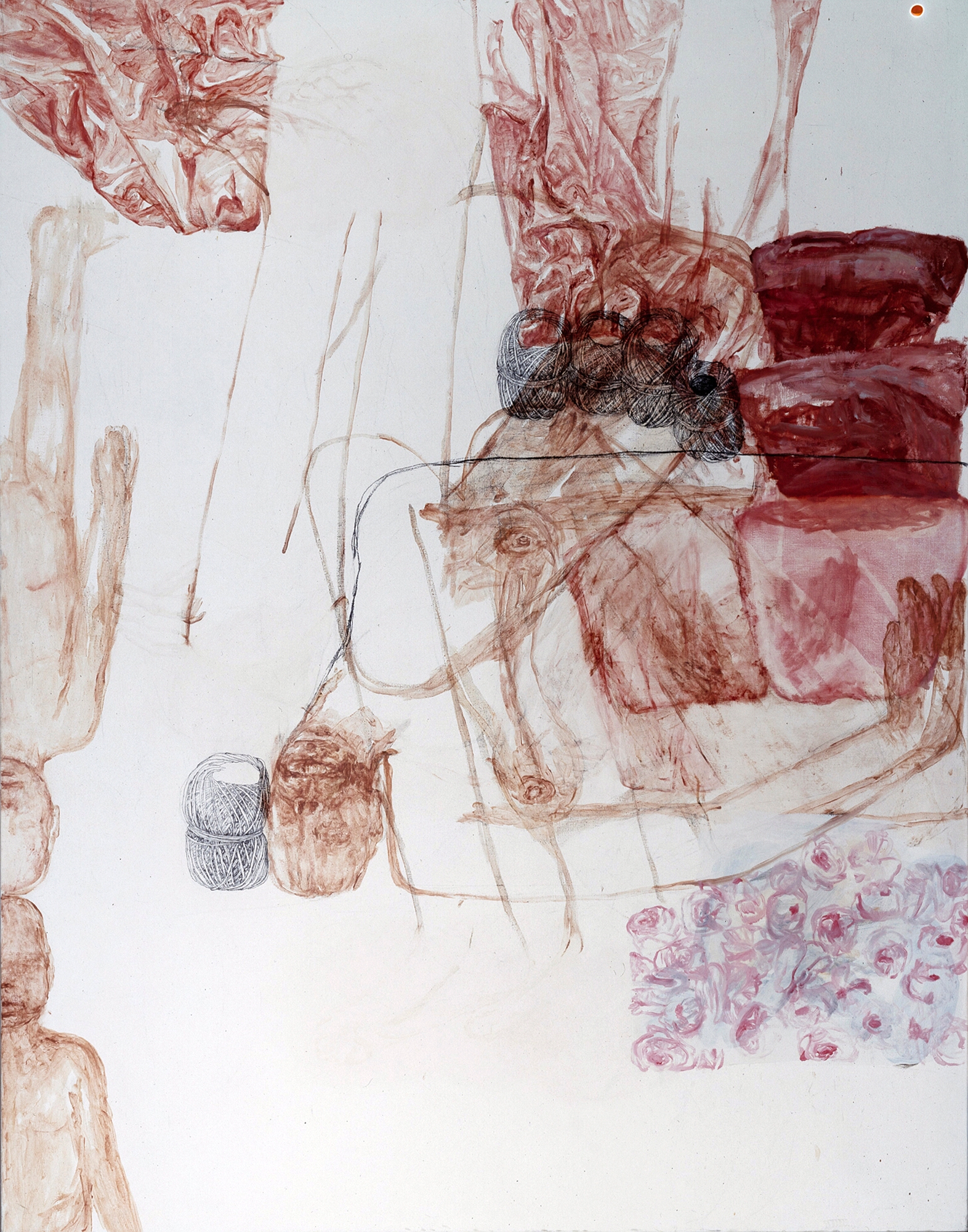 Musterbild, Eitempera und Kohle auf Papier, 126 x 106 cm, 1995  Treibholz, Eitempera, Öl und Kohle auf Papier, 122 x 106 cm, 1995  Geburtsversuch, Eitempera, Öl und Kohle auf Papier, 124 x 106 cm, 1995  Löffelbild, Eitempera und Kohle auf Papier, 124 x 106 cm, 1995  Faltenrockträgerin, Eitempera und Kohle auf Papier, 122 x 104 cm, 1995  Förmchenspiel, Eitempera und Kohle auf Papier, 125 x 106 cm, 1995  Frau an Birken, Eitempera, Öl und Kohle auf Leinwand, 220 x 165 cm, 1995  Daphne mit Netz, Eitempera, Öl und Kohle auf Leinwand, 210 x 165 cm, 1995  Große Faltanleitung, Eitempera, Kohle, Öl auf Leinwand, 210 x 165 cm, 1995  Große Pfützenbildung, Eitempera, Öl und Kohle auf Leinwand, 165 x 210 cm, 1995  Hockende mit Muschel, Eitempera, Öl und Kohle auf Leinwand, 165 x 210 cm, 1995/1996  Liegende mit Schnittkette, Eitempera, Öl und Kohle auf Leinwand, 210x 165 cm, 1995 19961994