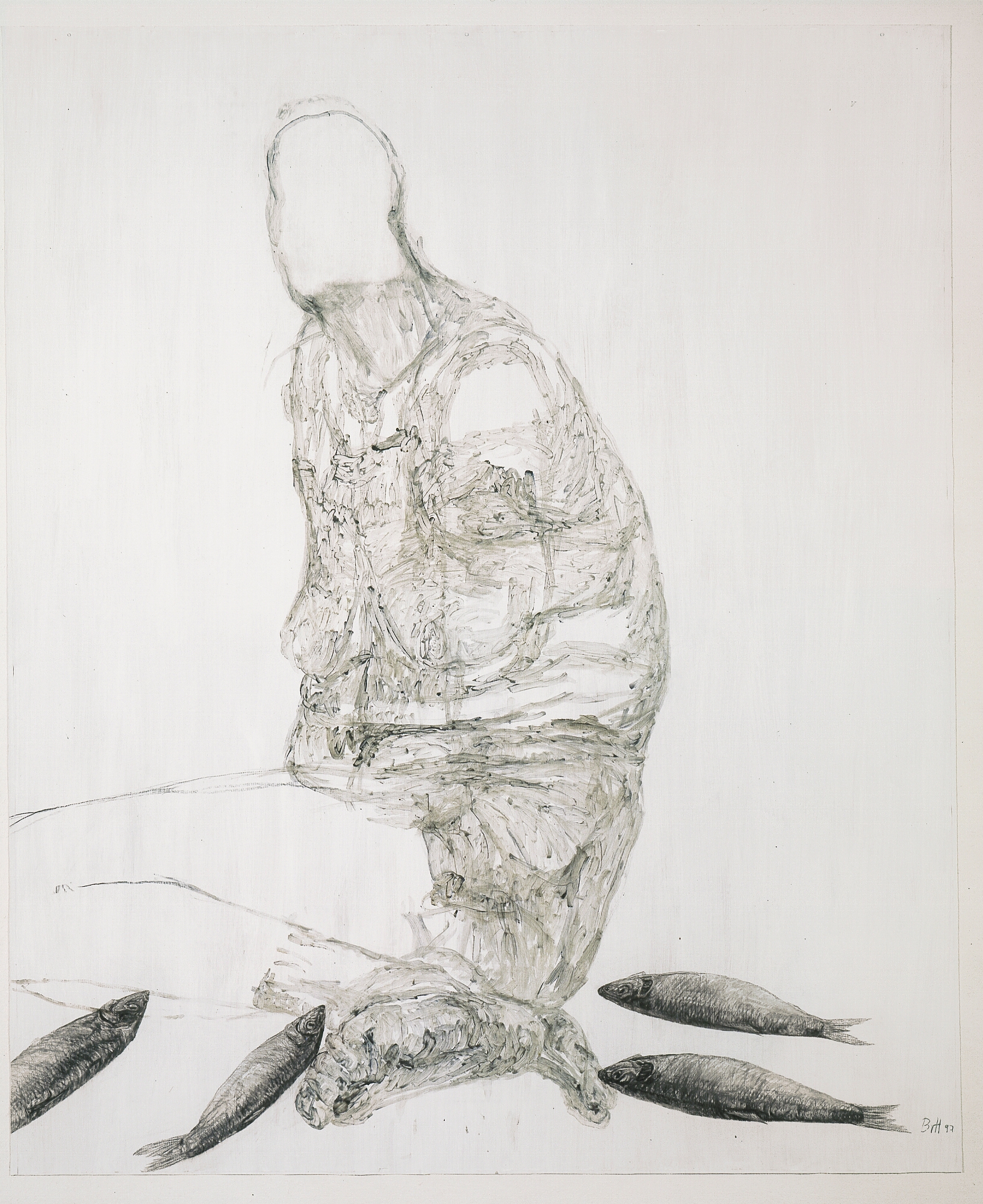 Aufgerebbelte, Eitempera und Kohle auf Papier, 125 x 106,5 cm, 1997  Belegung, Eitempera und Kohle auf Papier, 125,5 x 106 cm, 1997  Daphne, halb, Eitempera und Kohle auf Papier, 126 x 106 cm, 1997  Kleine Meerjungfrau, Eitempera und Kohle auf Papier, 125,5 x 106 cm, 1997  Nestbereiterin, Eitempera und Kohle auf Papier, 125,5 x 105,5 cm, 1997  Gefaltete, Eitempera und Kohle auf Papier, 127 x 107,5 cm, 1997  Frau mit geöffneter Umhängetasche, Eitempera, Öl und Kohle auf Leinwand, 210 x 165 cm, 1997  Frau, gesteckt, Eitempera, Öl und Kohle auf Leinwand, 210 x 165 cm, 1997 19981996