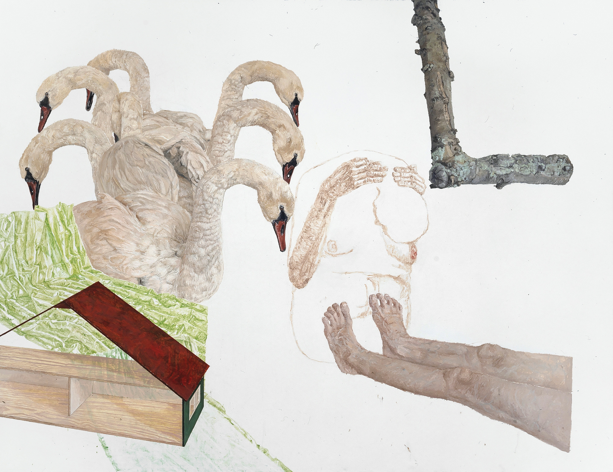 Anschaukeln, Eitempera, Öl auf Leinwand, 185 x 240 cm, 2002  Leda, narbig, Eitempera, Öl auf Leinwand, 185 x 240 cm, 2002  Beugungsversuche, Eitempera, Öl auf Leinwand, 185 x 240 cm, 2002/2003  Wurzelstück, Eitempera, Öl auf Leinwand, 185 x 240 cm, 2002  Beckenauflage, Eitempera, Öl auf Leinwand, 210 x 165 cm, 2002  Türfüllungen, Eitempera, Öl auf Leinwand, 210 x 165 cm, 2002  Waschung, Eitempera, Öl auf Papier, 125 x 106 cm, 2002  Wachsentwicklung, Eitempera, Öl auf Papier, 125 x 106 cm, 2002 20032001