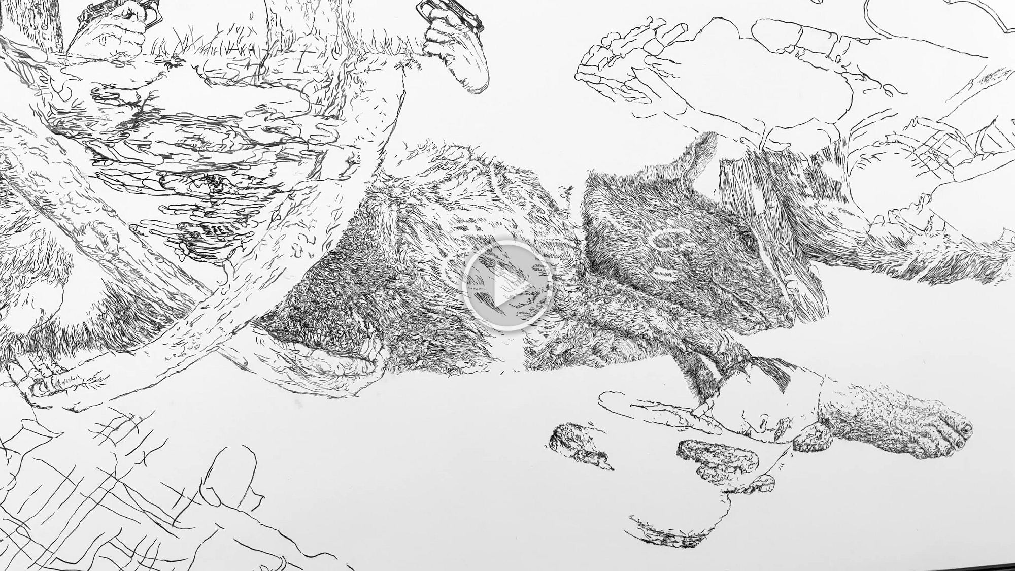 Bettina van Haaren/Wolfgang Folmer, "Gebietsstücke gerissen", 4,20 x 12,30 m, Acryl auf Dispersion (Detail), 2.11.25 - 8.2.2026, Museum Villa Rot,…