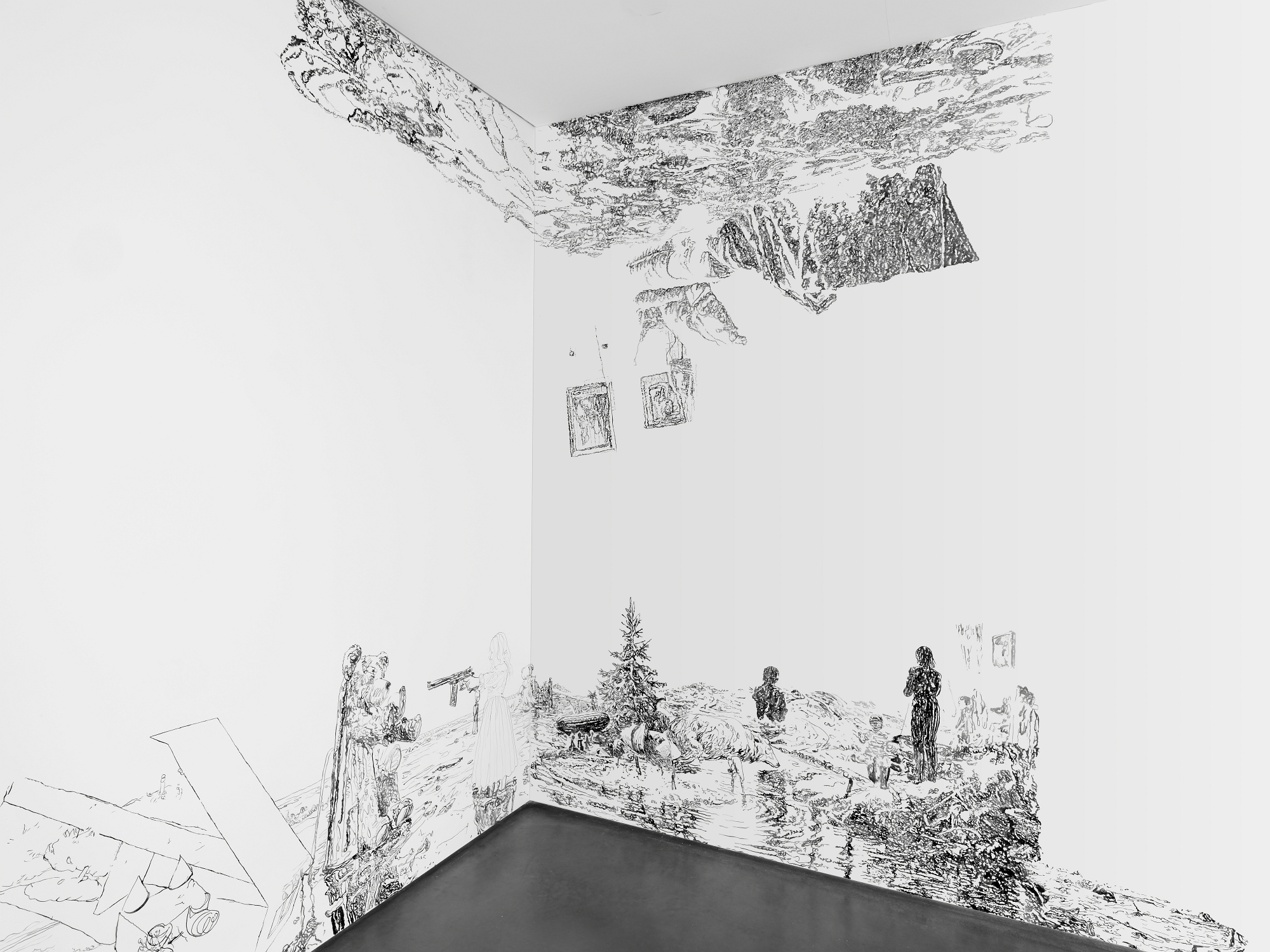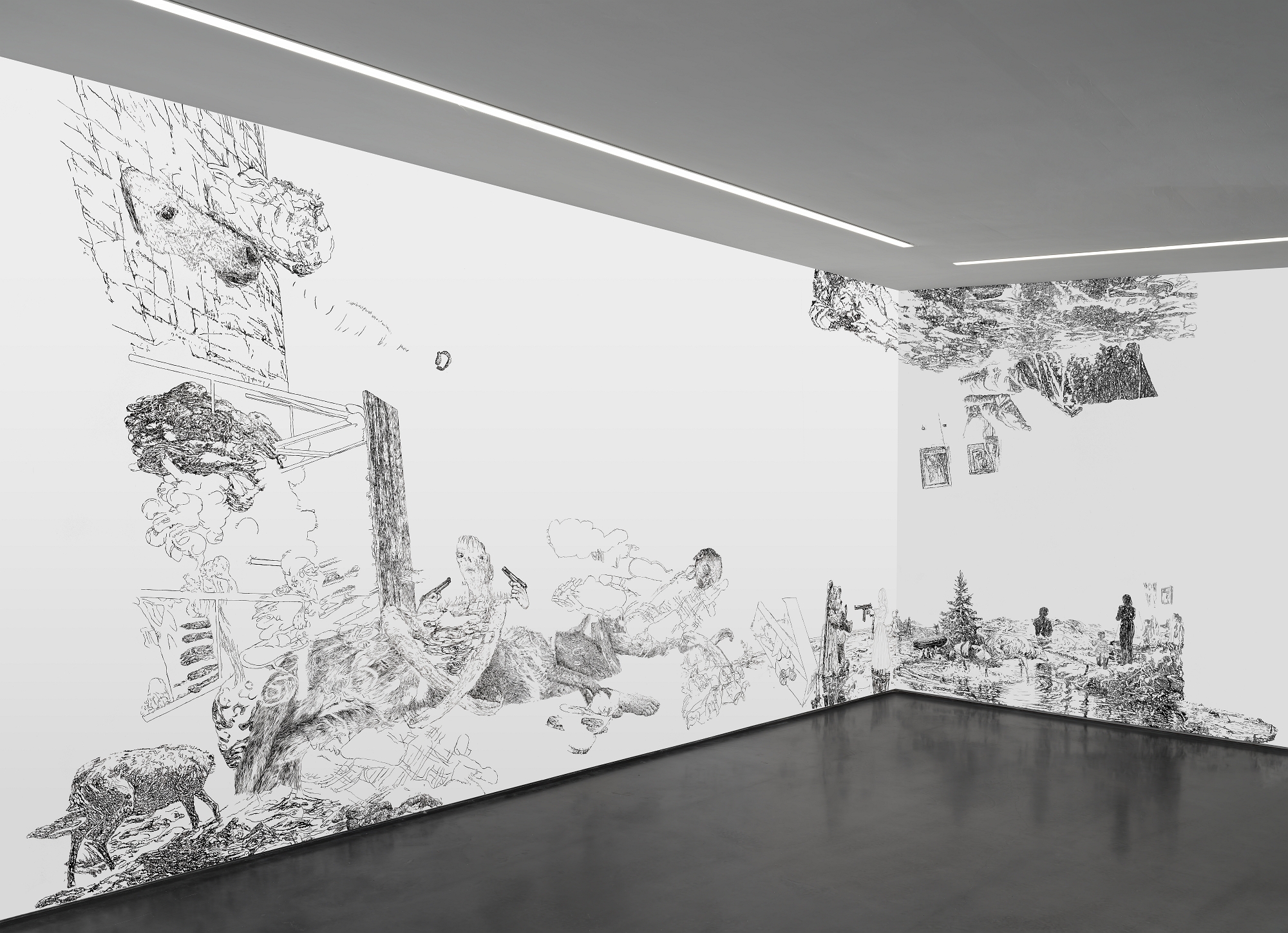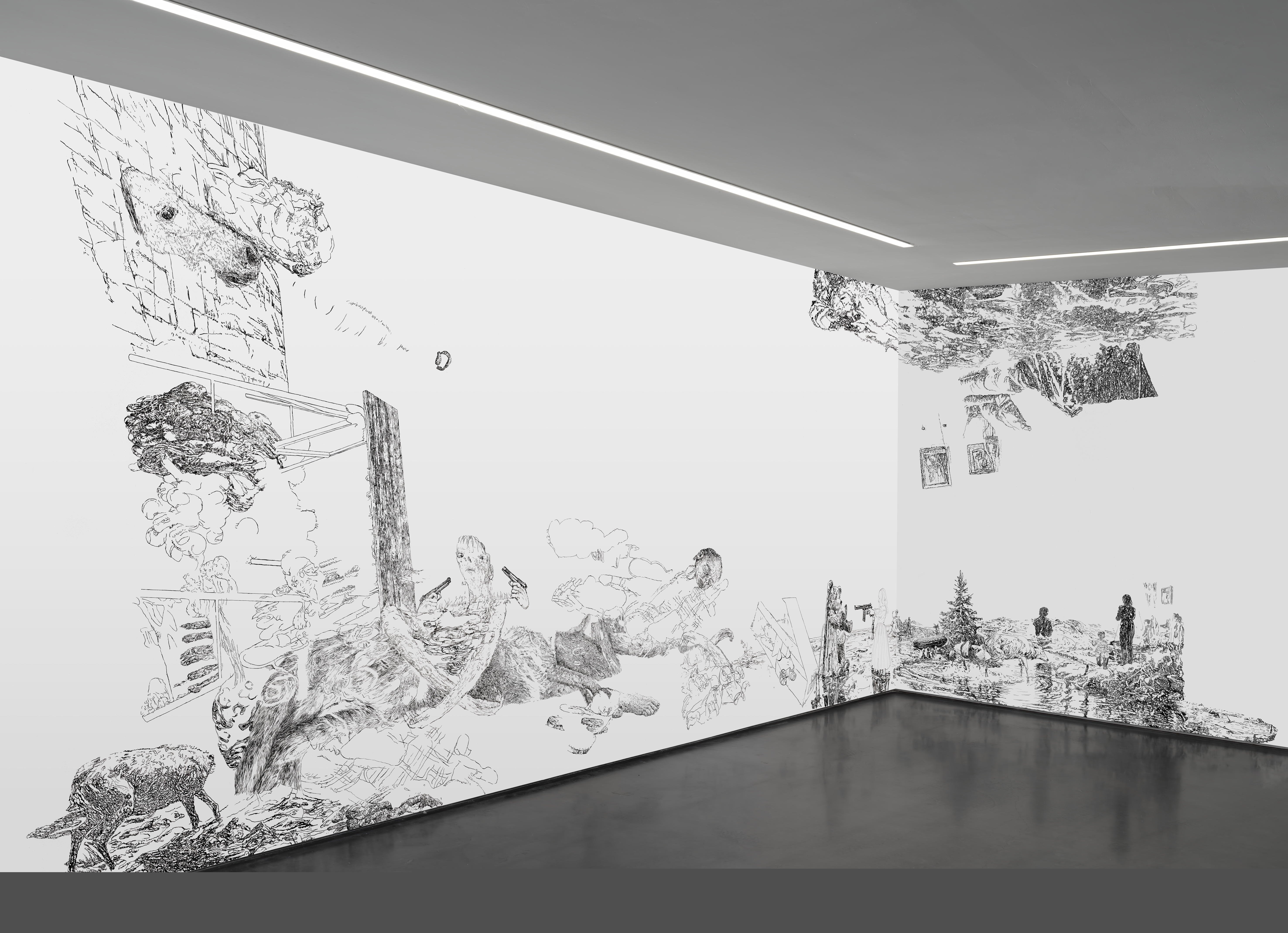 Bettina van Haaren/Wolfgang Folmer, "Gebietsstücke, gerissen", 4,20 x 12,30 m, Acryl auf Dispersion, 2.11.25 - 8.2.2026, Museum Villa Rot,…