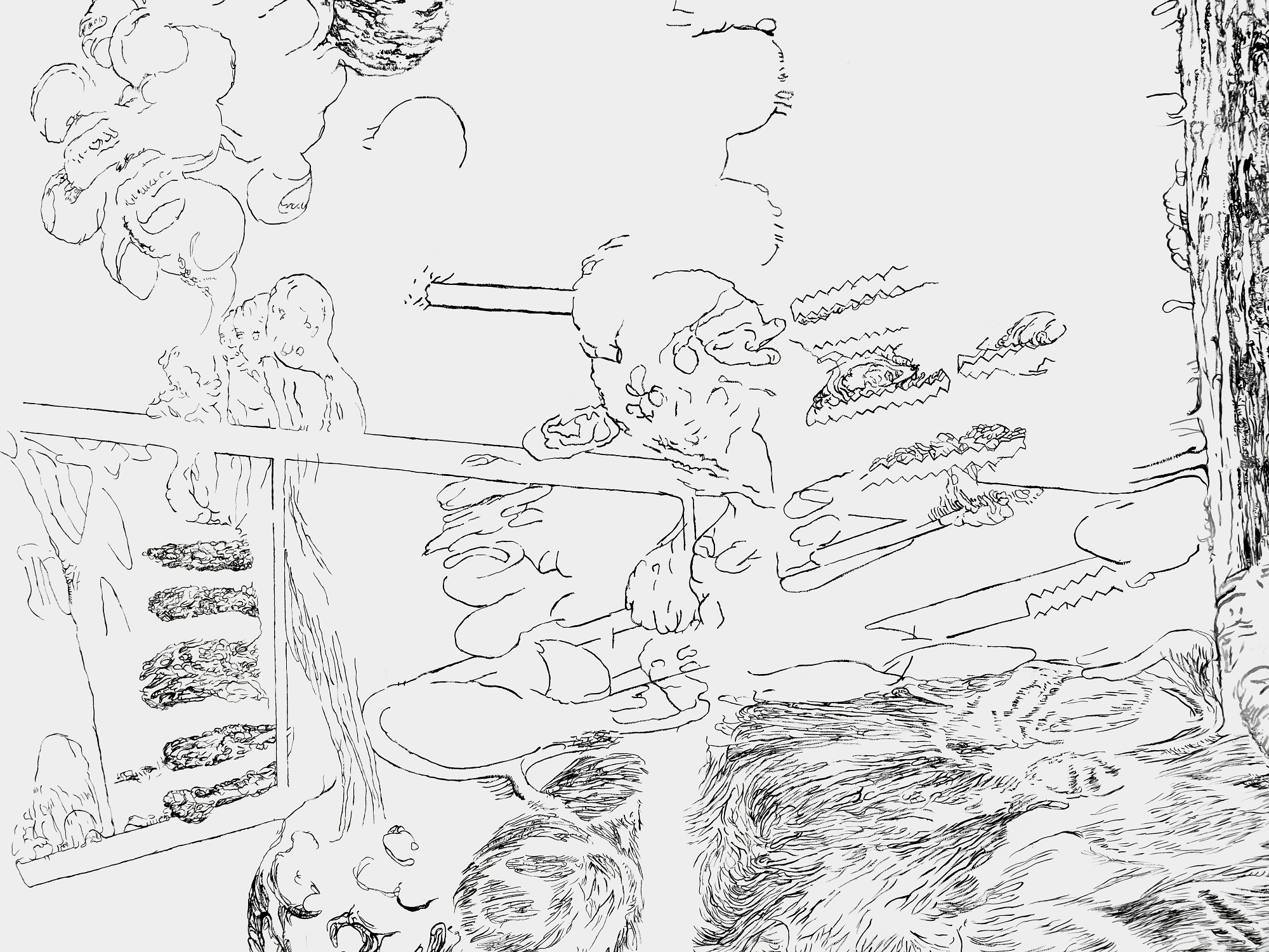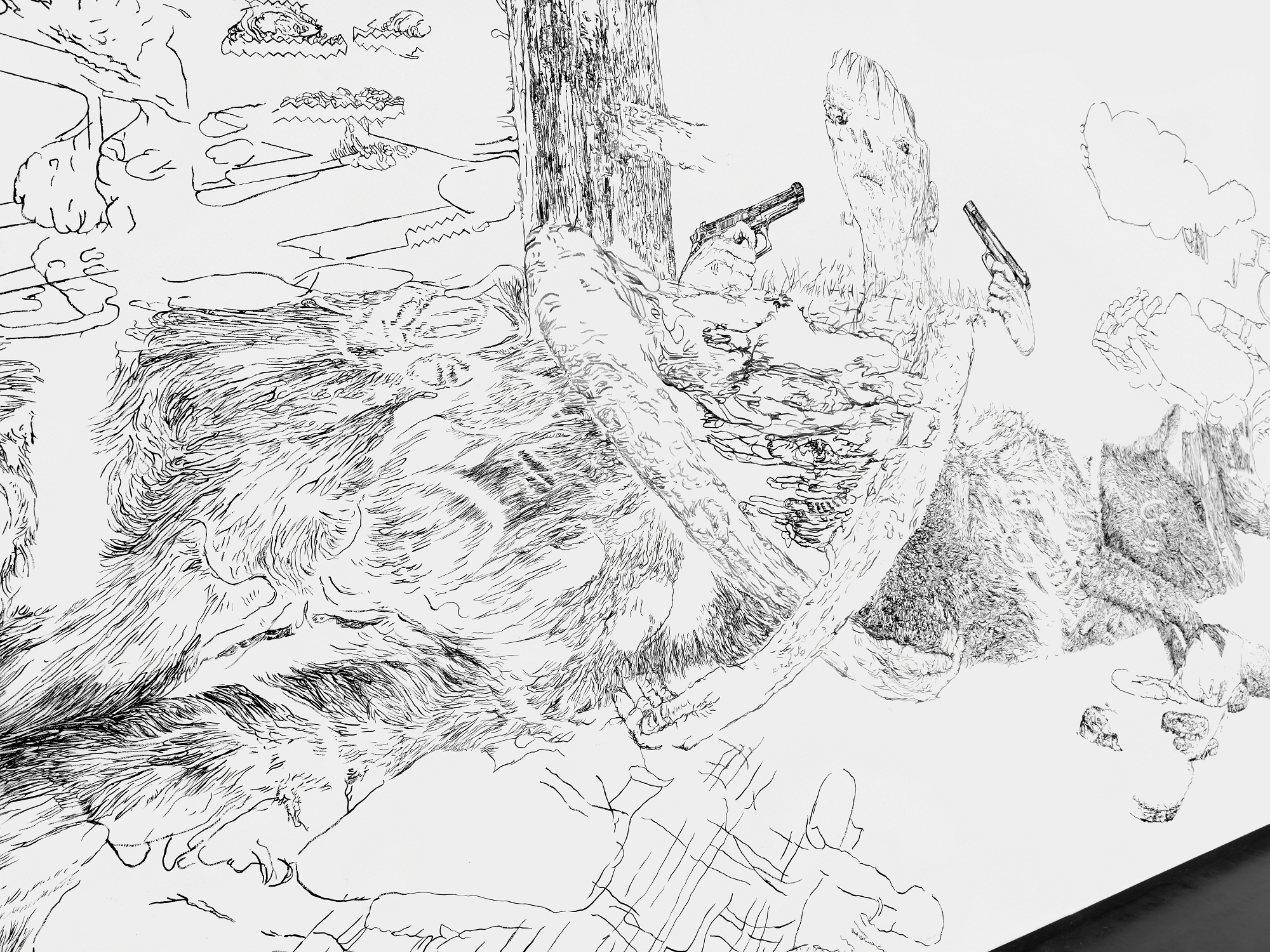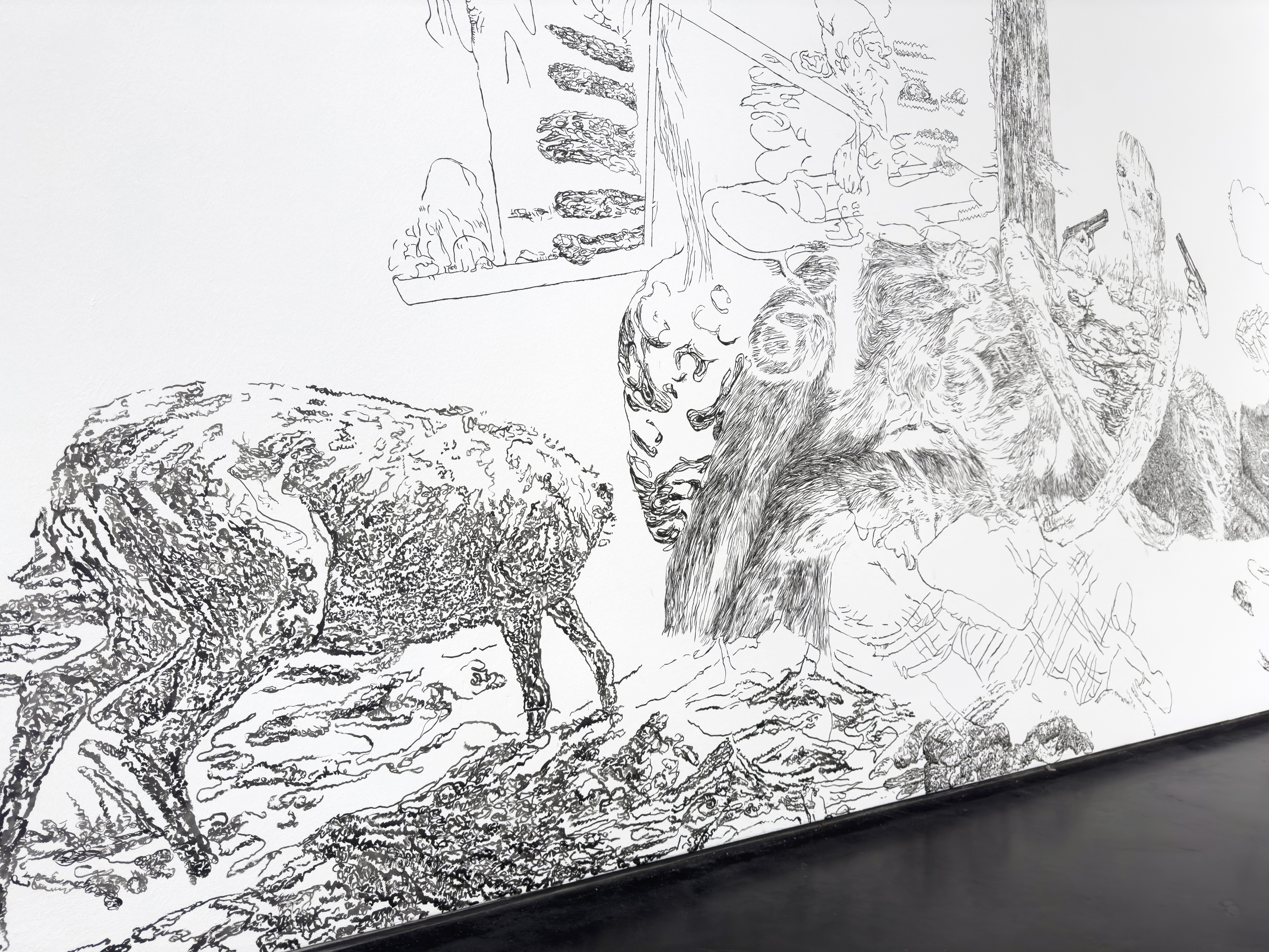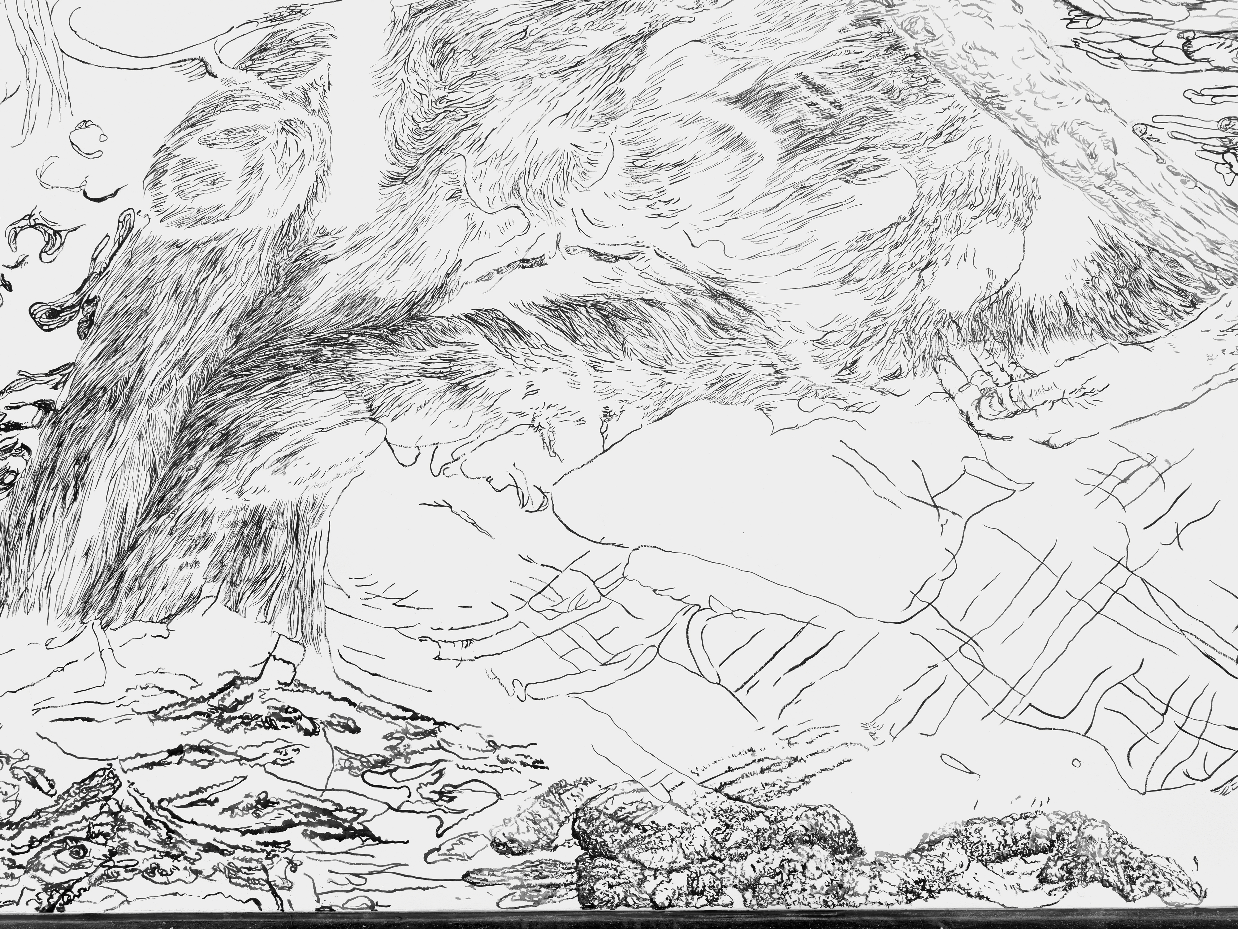Bettina van Haaren/Wolfgang Folmer, "Gebietsstücke, gerissen", 4,20 x 12,30 m, Acryl auf Dispersion (Detail), 2.11.25 - 8.2.2026, Museum Villa Rot,…