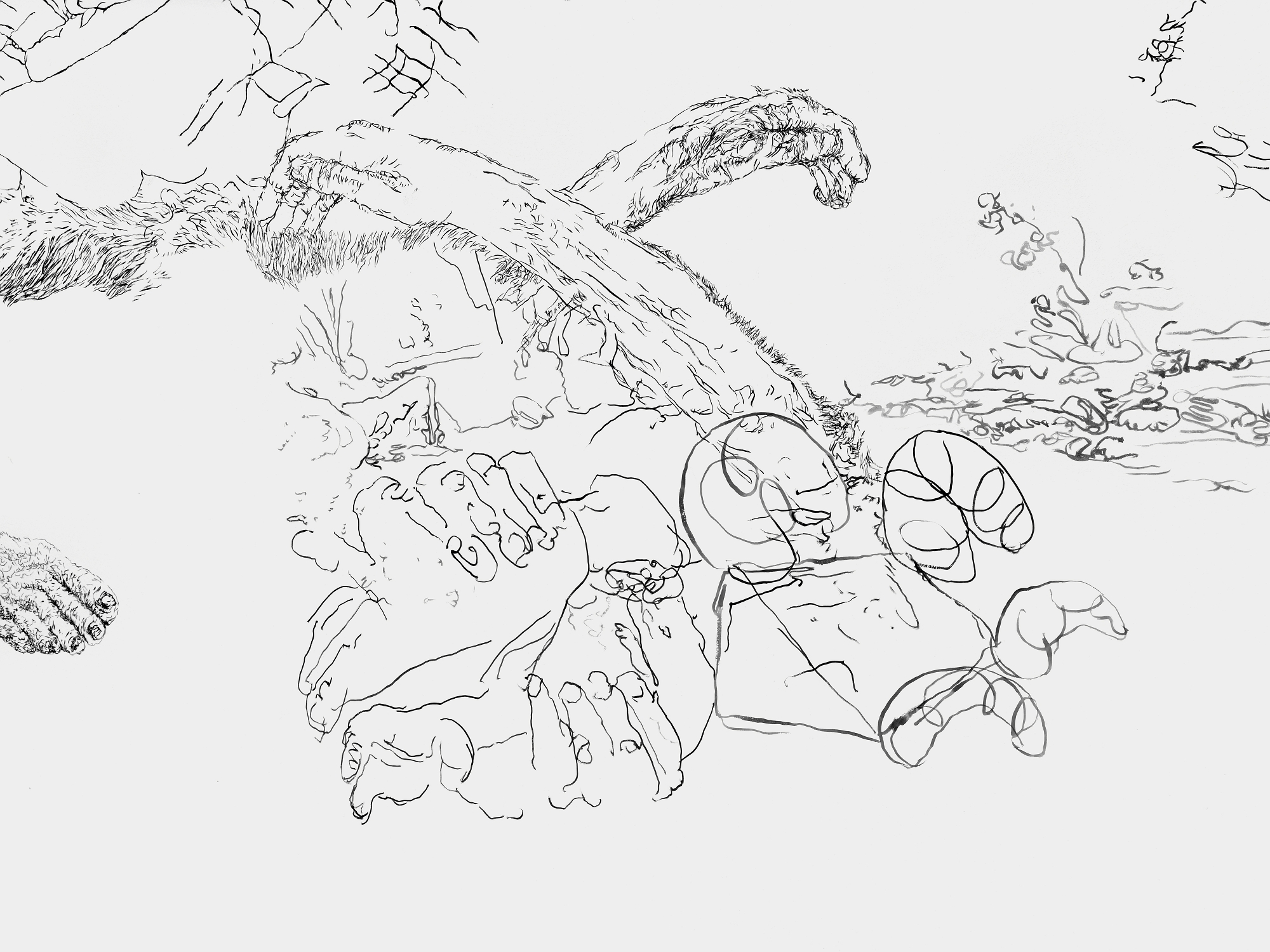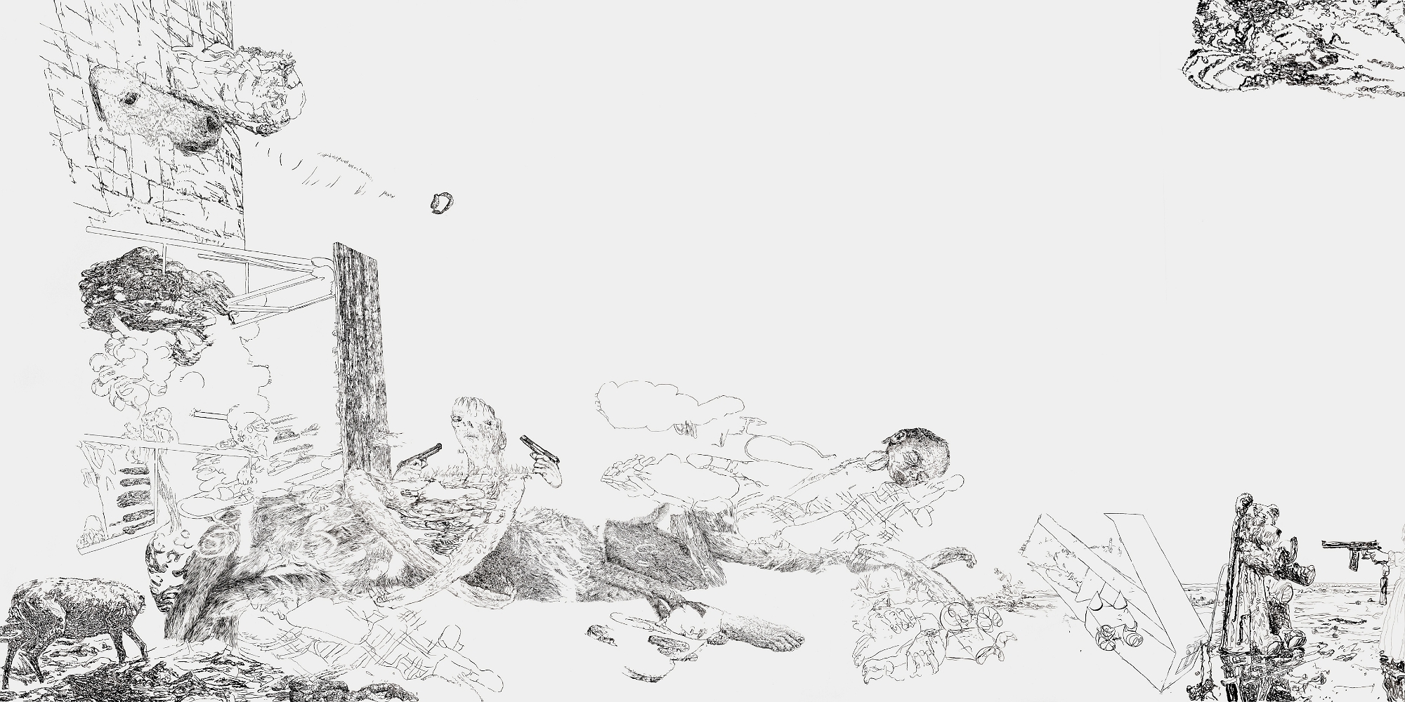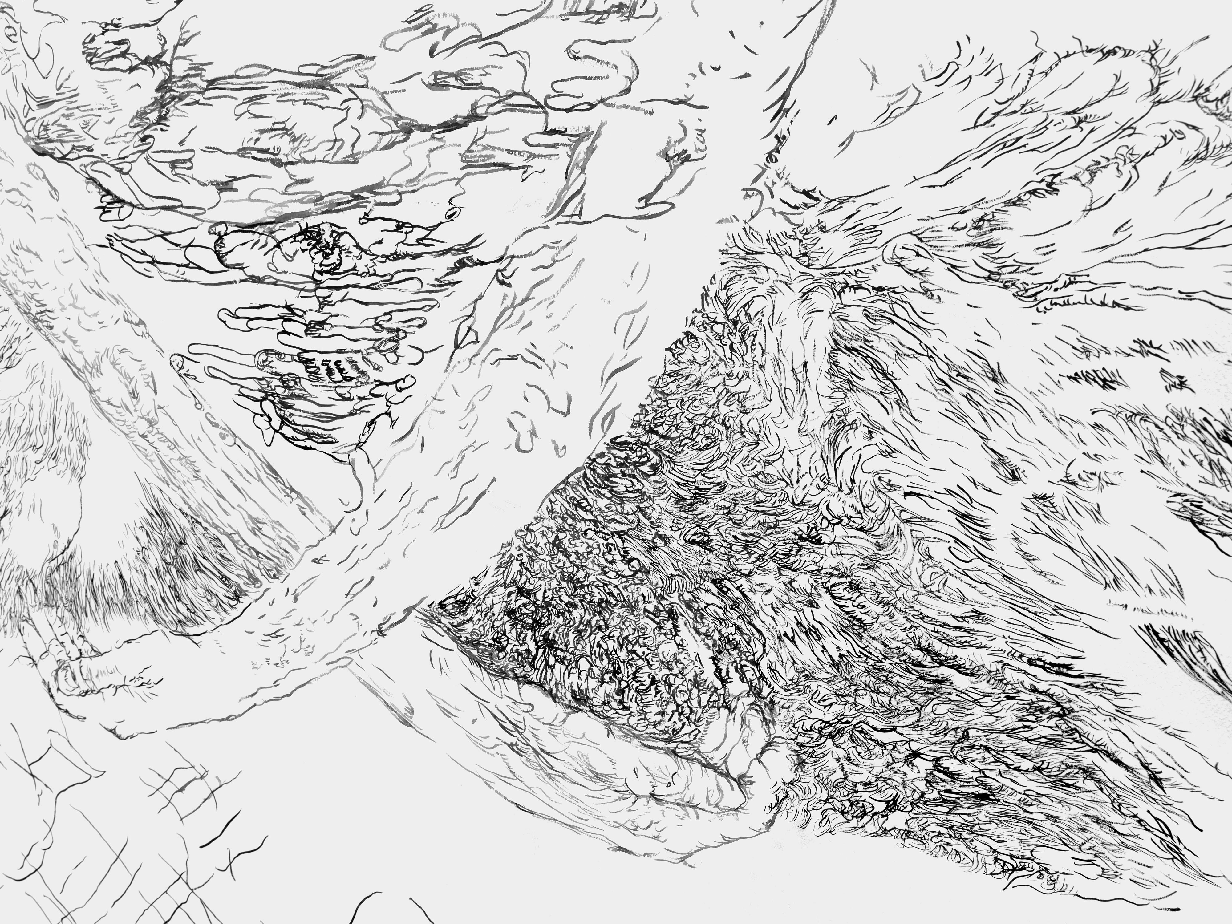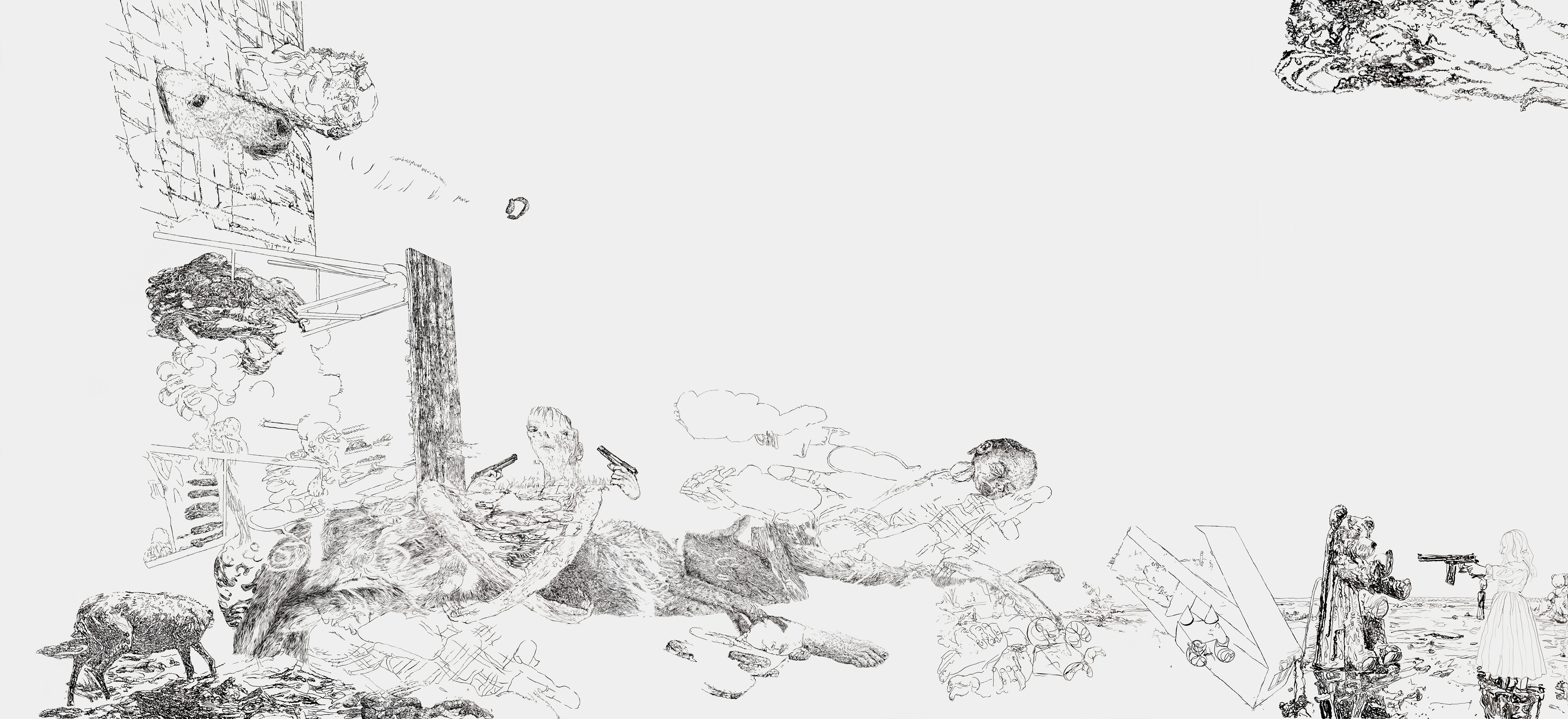 Bettina van Haaren/Wolfgang Folmer, "Gebietsstücke, gerissen", 4,20 x 12,30 m, Acryl auf Dispersion (Detail), 2.11.25 - 8.2.2026, Museum Villa Rot,…