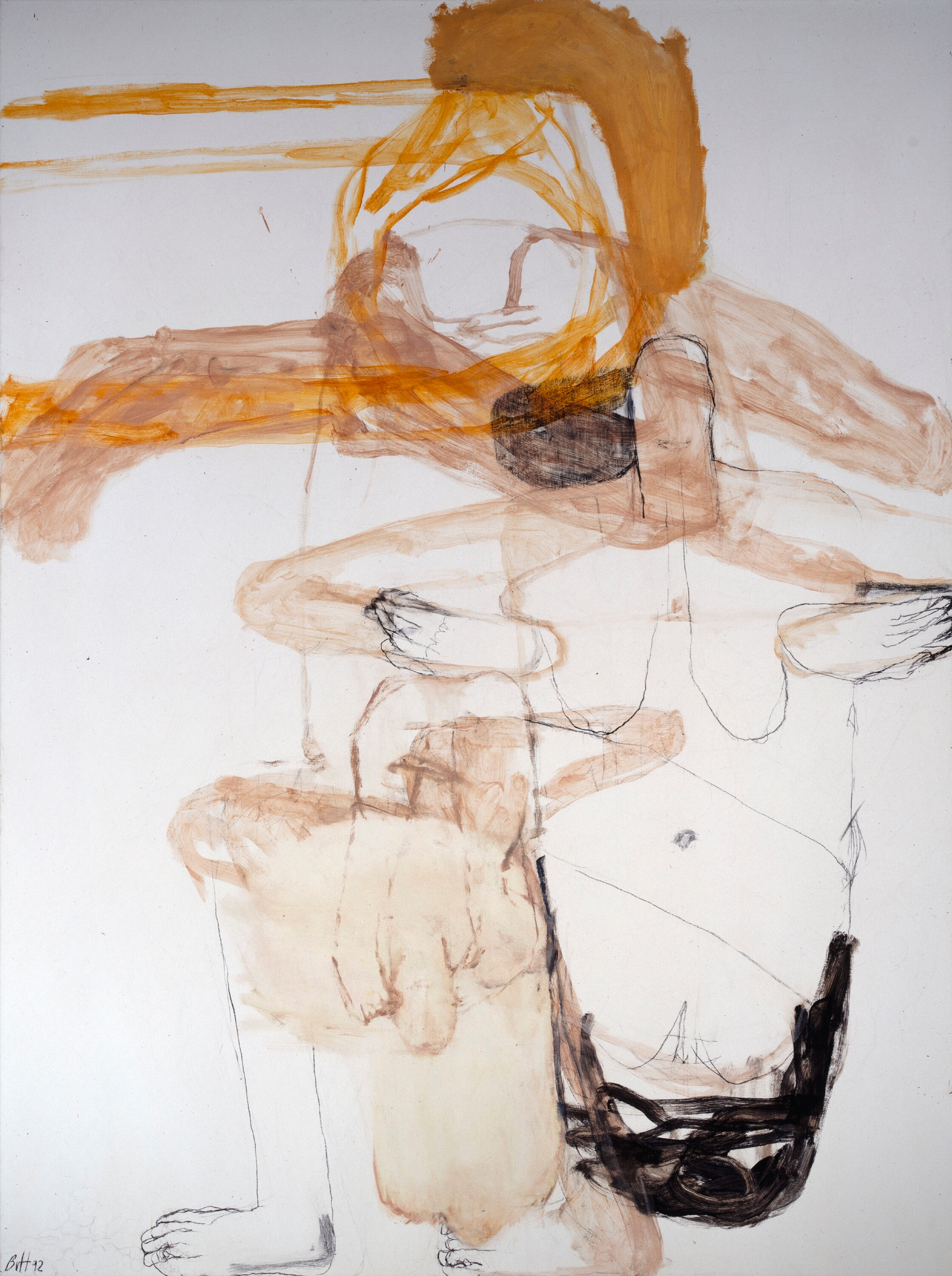 Wickelzone, Eitempera, Kohle, Öl auf Leinwand, 154 x 186 cm, 1990/1992  Urteil des Paris (anders), Eitempera, Kohle, Öl auf Leinwand, 210 x 155 cm, 1992  Spülung (Taube entfernt), Eitempera, Öl und Kohle auf Leinwand, 195 x 155 cm, 1991/1992  Selbstverkündung, Eitempera, Kohle, Öl auf Leinwand, 200 x 155 cm, 1992  Eva, zugedeckt, Eitempera, Öl auf Leinwand, 200 x 155 cm, 1991/1992  Badende, Eitempera, Öl auf Leinwand, 156 x 195 cm, 1992  Horizontversuch, Eitempera, Öl und Kohle auf Leinwand, 150 x 200 cm, 1992  Maria, entleert, Öl und Kohle auf Leinwand, 150 x 200 cm, 1992  Entschuppung (türkisches Bad), Eitempera, Kohle, Öl auf Leinwand, 200 x 150 cm, 1992  o.T., Eitempera, Kohle, Öl auf Leinwand, 200 x 150 cm, 1992  Brütemde, mit Lilie, Eitempera, Kohle, Öl auf Leinwand, 159 x 195 cm, 1992  Auswaschung, Eitempera, Kohle, Öl auf Leinwand, 155 x 210 cm, 1992  Auf Bettvorleger, Eitempera, Kohle, Öl auf Leinwand, 155 x 210 cm, 1992 19931991