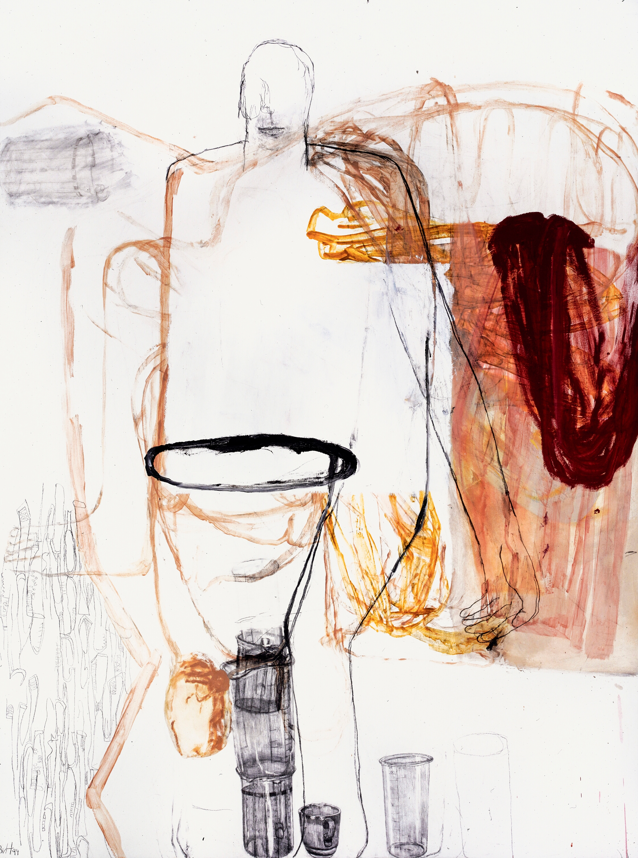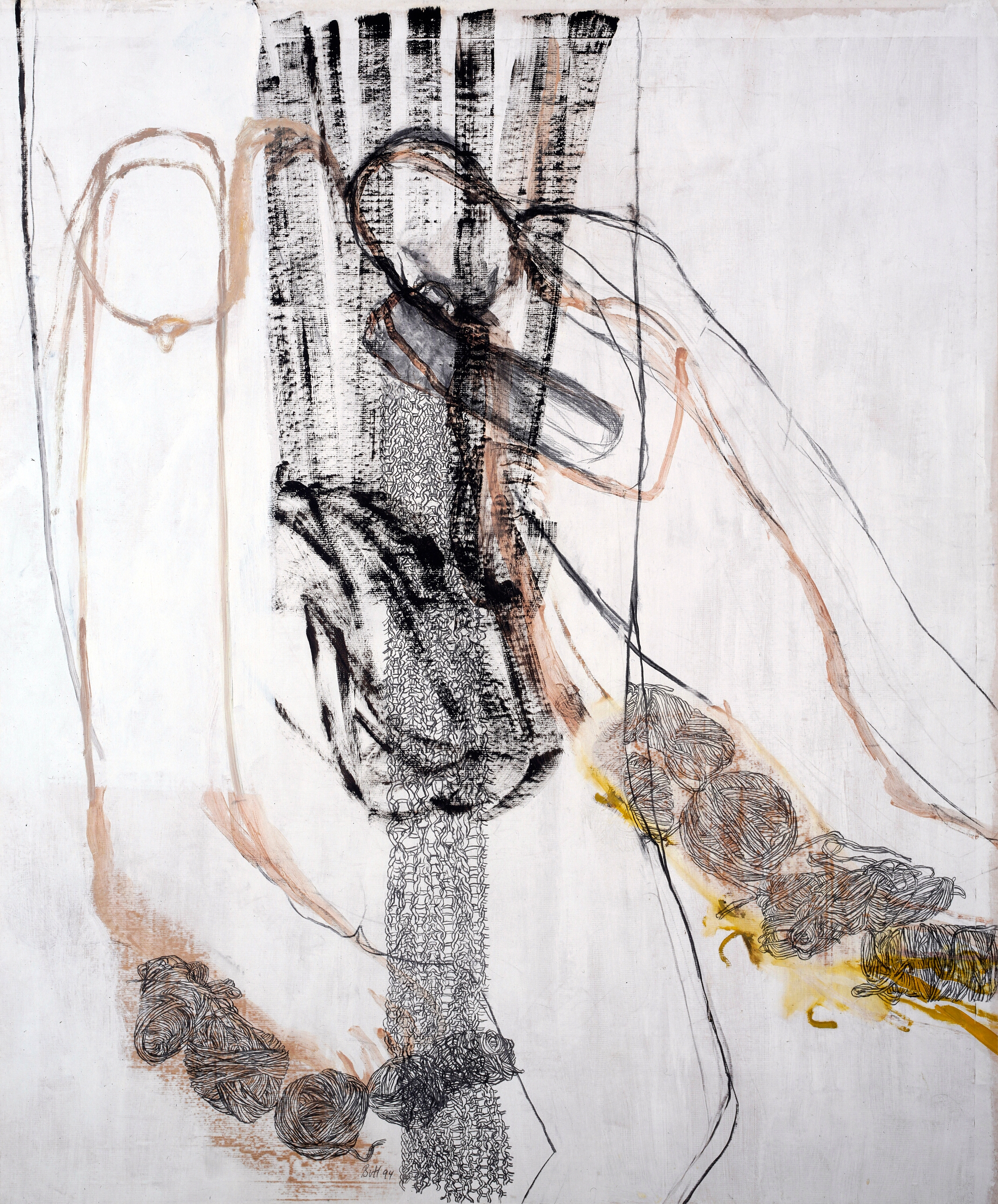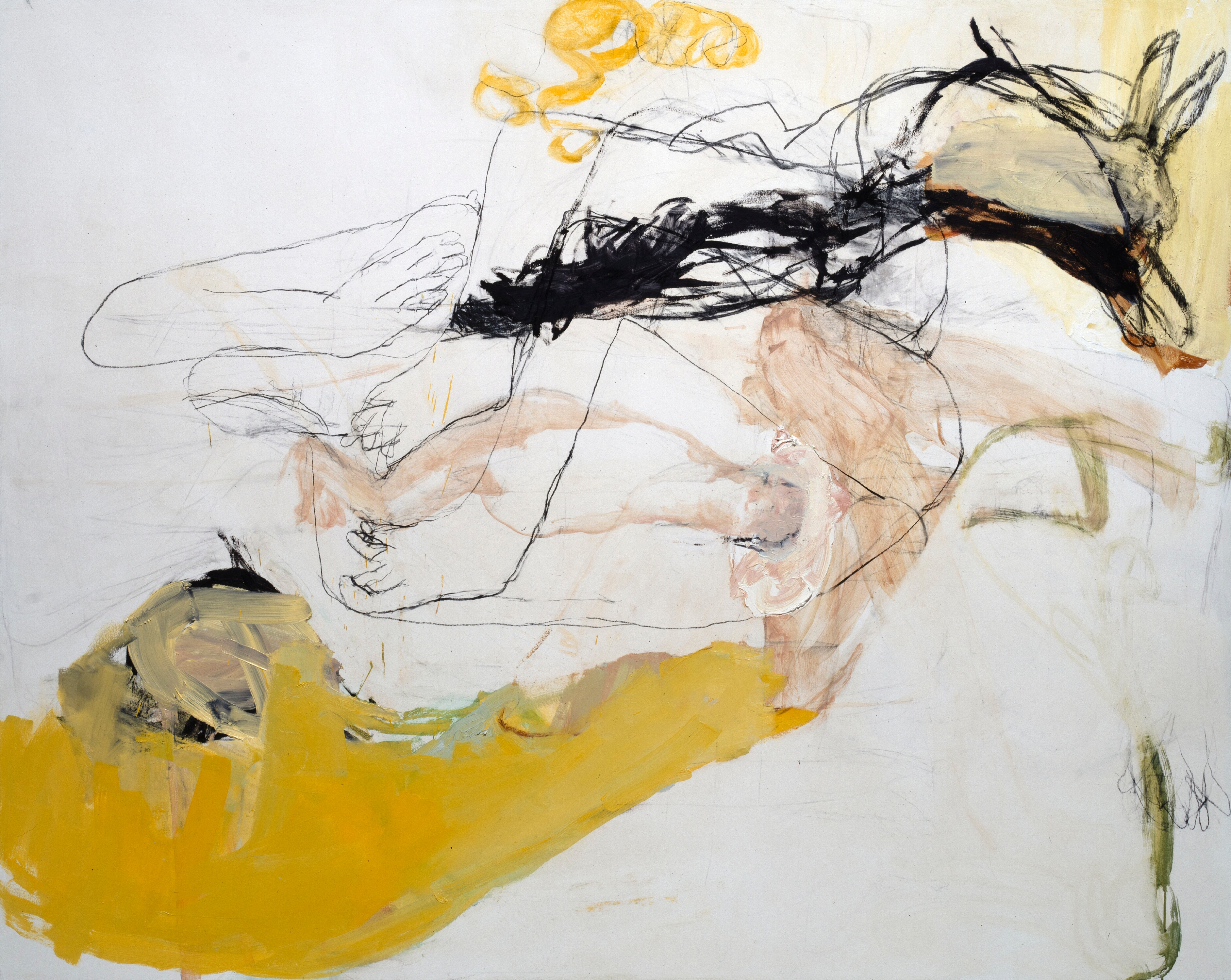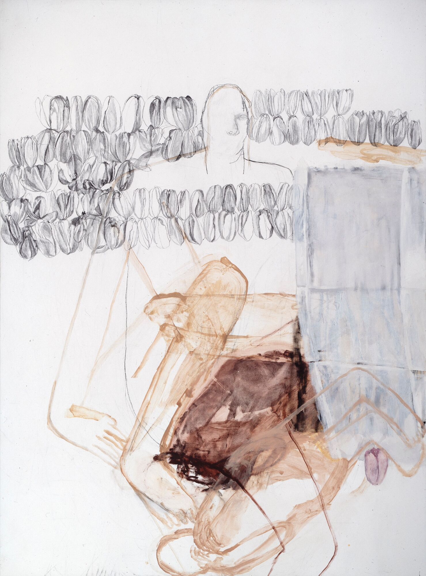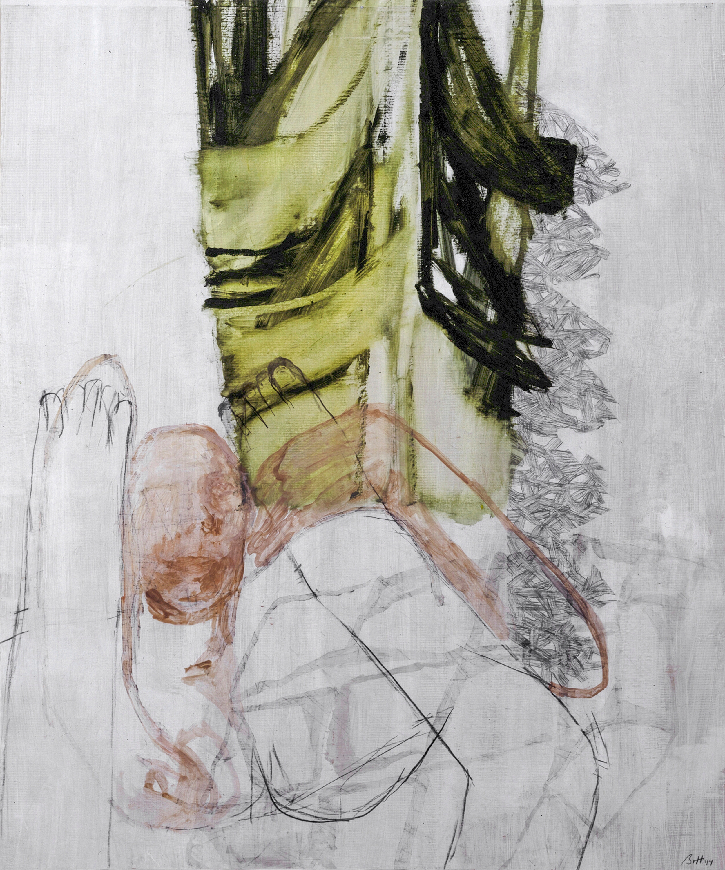 Frau an Tannenwald, Eitempera, Kohle, Öl auf Leinwand, 155 x 210 cm, 1994  Frau an Tanne, Kohle, Eitempera, Kohle, Öl auf Papier, 118 x 99 cm, 1994  Susanna, gespiegelt, Eitempera, Kohle, Öl auf Leinwand, 210 x 155 cm, 1994  Daphnes Geburt, Eitempera, Kohle, Öl auf Papier, 125 x 105 cm, 1994  Wollstück, Eitempera, Kohle, Öl auf Papier, 125 x 105 cm, 1994  Schnittbild, Eitempera, Kohle, Öl auf Leinwand, 210 x 155 cm, 1994  Susanna, holländisch, Eitempera, Kohle, Öl auf Leinwand, 210 x 155 cm, 1994  o.T., Eitempera, Kohle, Öl auf Leinwand, 210 x 155 cm, 1994  Liegnde mit Häschen, Eitempera, Kohle, Öl auf Leinwand, 155 x 210 cm, 1994 19951993