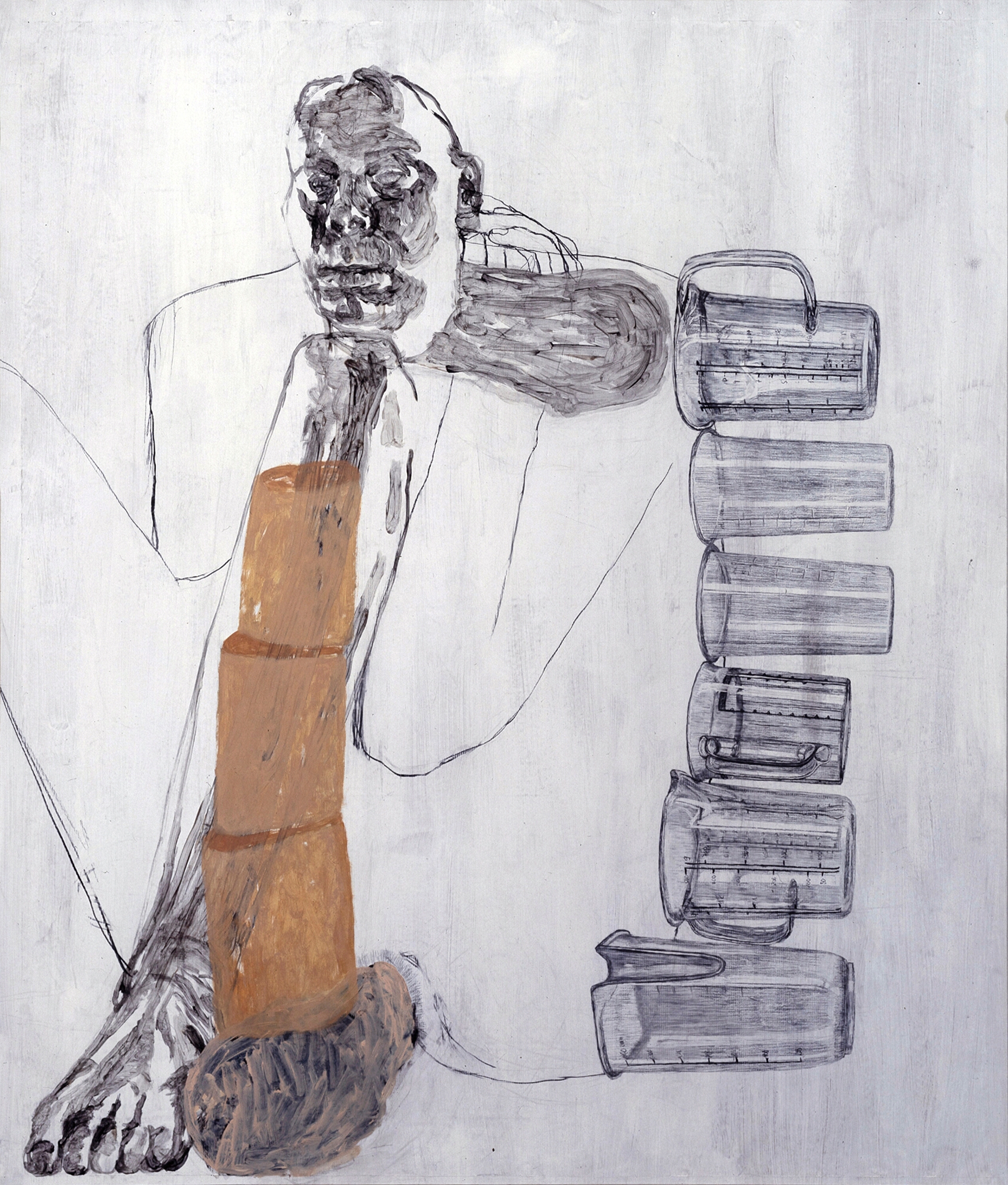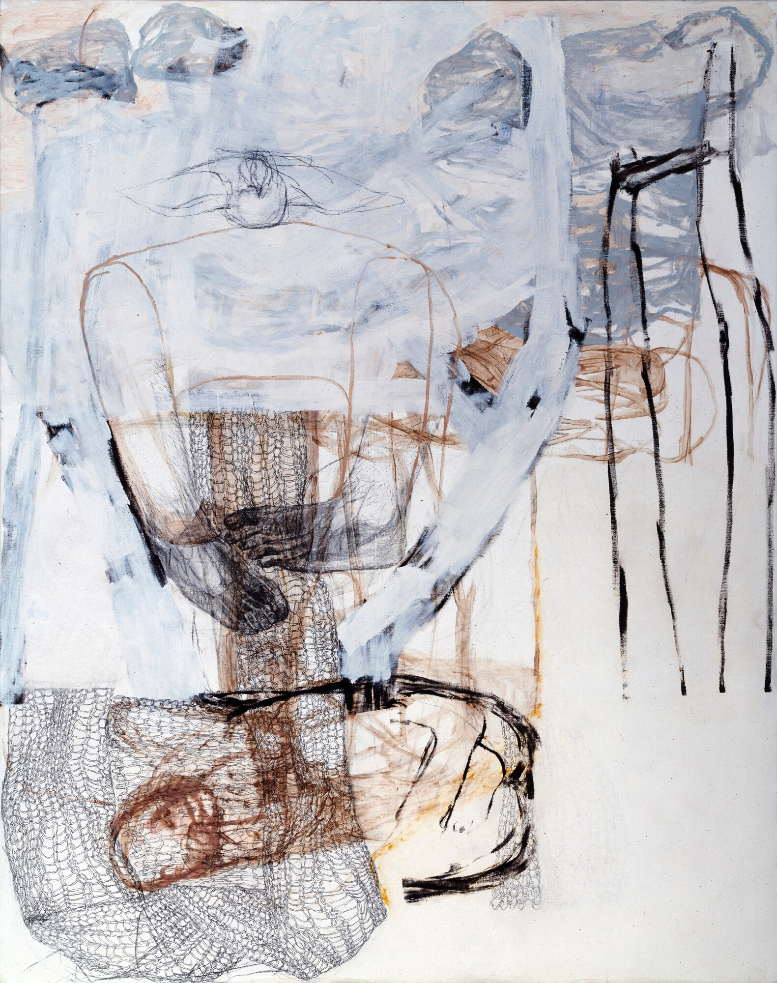 Musterbild, Eitempera und Kohle auf Papier, 126 x 106 cm, 1995  Treibholz, Eitempera, Öl und Kohle auf Papier, 122 x 106 cm, 1995  Geburtsversuch, Eitempera, Öl und Kohle auf Papier, 124 x 106 cm, 1995  Löffelbild, Eitempera und Kohle auf Papier, 124 x 106 cm, 1995  Faltenrockträgerin, Eitempera und Kohle auf Papier, 122 x 104 cm, 1995  Förmchenspiel, Eitempera und Kohle auf Papier, 125 x 106 cm, 1995  Frau an Birken, Eitempera, Öl und Kohle auf Leinwand, 220 x 165 cm, 1995  Daphne mit Netz, Eitempera, Öl und Kohle auf Leinwand, 210 x 165 cm, 1995  Große Faltanleitung, Eitempera, Kohle, Öl auf Leinwand, 210 x 165 cm, 1995  Große Pfützenbildung, Eitempera, Öl und Kohle auf Leinwand, 165 x 210 cm, 1995  Hockende mit Muschel, Eitempera, Öl und Kohle auf Leinwand, 165 x 210 cm, 1995/1996  Liegende mit Schnittkette, Eitempera, Öl und Kohle auf Leinwand, 210x 165 cm, 1995 19961994