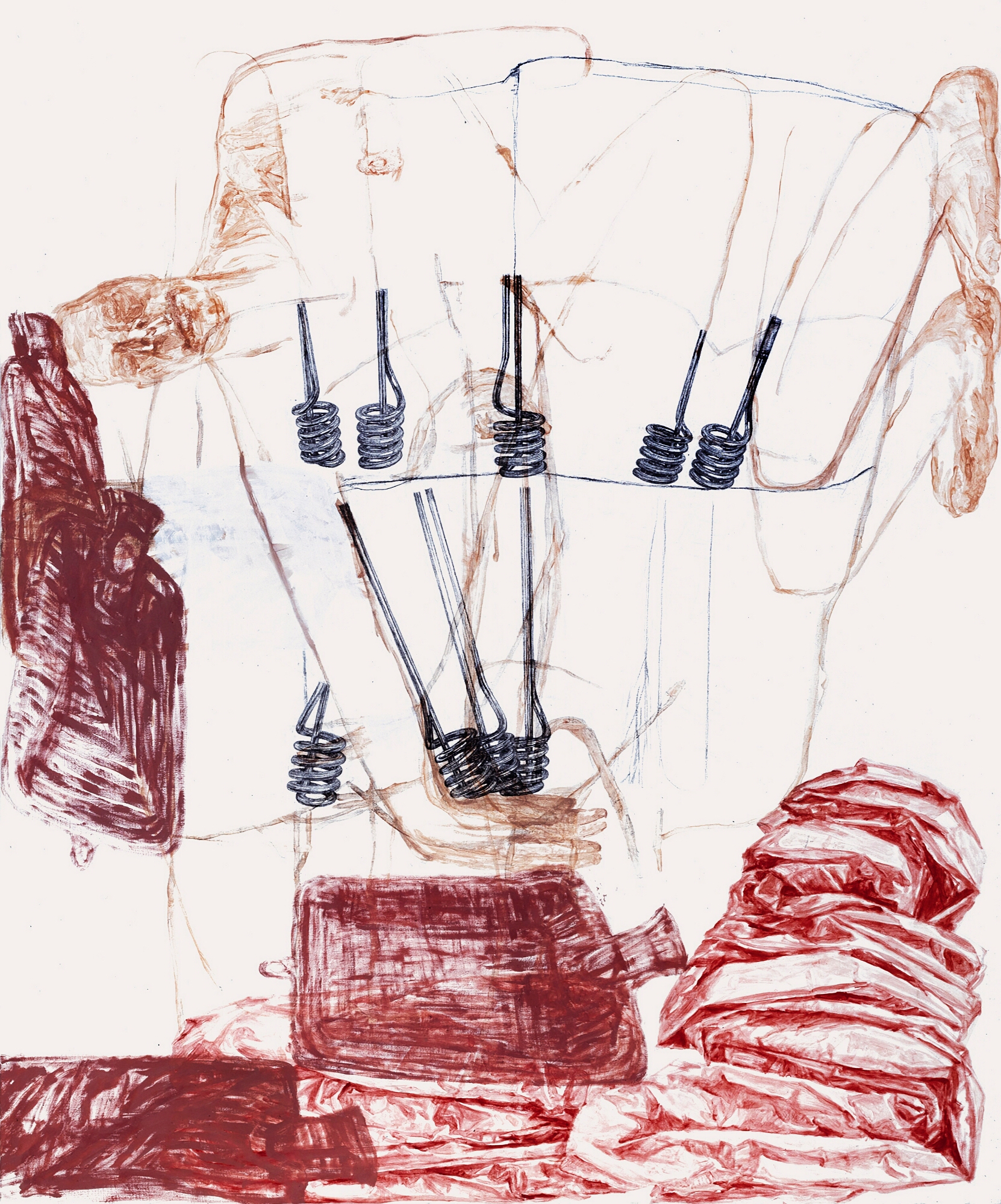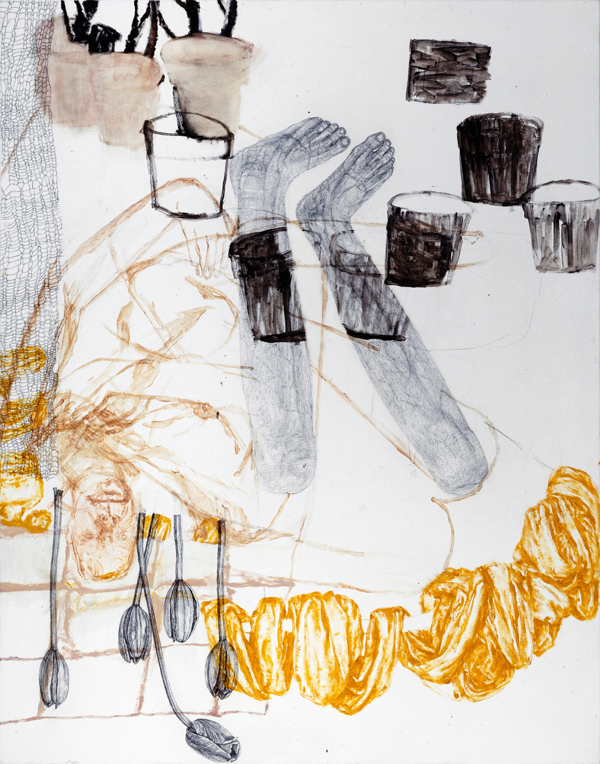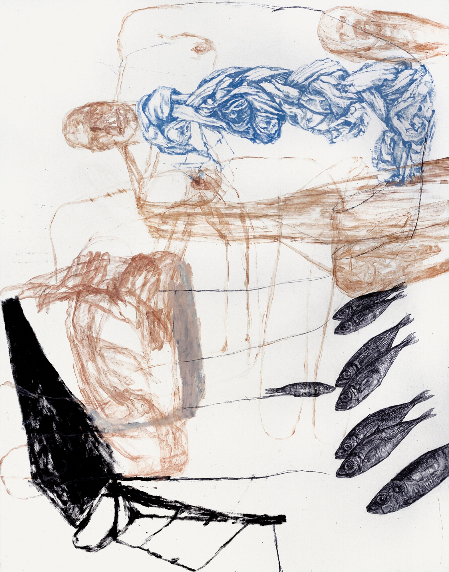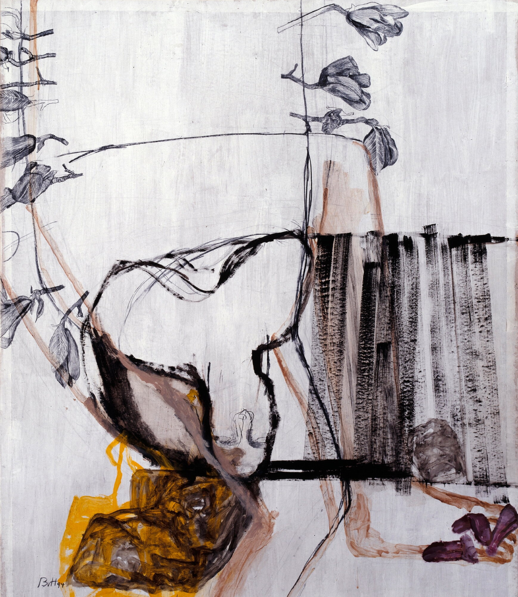 Weihnachtsbild, Eitempera, Öl und Kohle auf Papier, 125 x 105 cm, 1996  Hockende mit Muscheln, Eitempera, Öl und Kohle auf Papier, 124 x 103 cm, 1996  Liegende mit zwei Kissen, Eitempera, Öl und Kohle auf Papier, 106 x 125 cm, 1996  Erwärmte, ausgeschlagen, Eitempera, Öl und Kohle auf Leinwand, 210 x 165 cm, 1996  Einwicklung, Eitempera, Öl und Kohle auf Leinwand, 210 x 165 cm, 1996  Mutterprobe mit Lochung, Eitempera, Öl und Kohle auf Leinwand, 165 x 210 cm, 1996  Kragenträgerin, Eitempera, Öl und Kohle auf Leinwand, 210 x 165 cm, 1996/1997  Stilleben mit Blumentöpfen,, Öl und Kohle auf Leinwand, 210 x 165 cm, 1996  Wäschebild mit Fischgrätenmuster, Eitempera, Öl und Kohle auf Leinwand, 210 x 165 cm, 1996  Daphne, gespiegelt, Öl, Eitempera, Kohle auf Leinwand, 125 x 106 cm, 1996 19971995