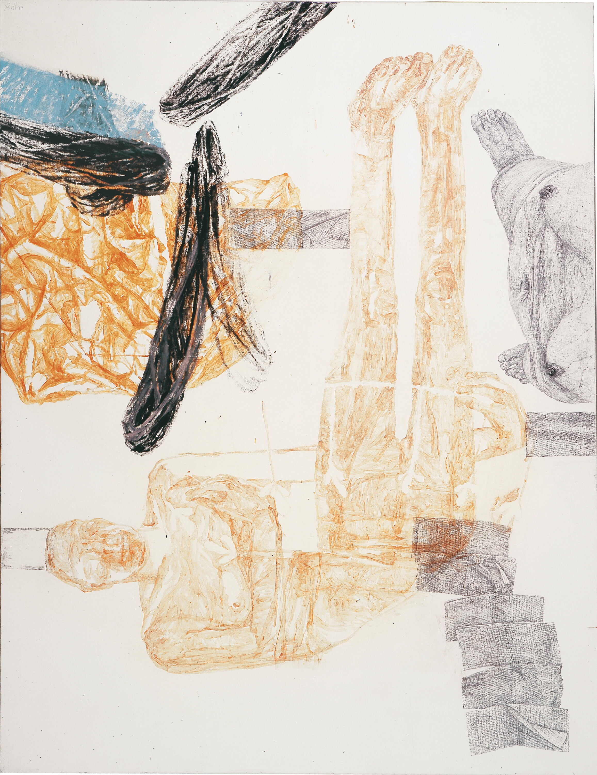 Aufgerebbelte, Eitempera und Kohle auf Papier, 125 x 106,5 cm, 1997  Belegung, Eitempera und Kohle auf Papier, 125,5 x 106 cm, 1997  Daphne, halb, Eitempera und Kohle auf Papier, 126 x 106 cm, 1997  Kleine Meerjungfrau, Eitempera und Kohle auf Papier, 125,5 x 106 cm, 1997  Nestbereiterin, Eitempera und Kohle auf Papier, 125,5 x 105,5 cm, 1997  Gefaltete, Eitempera und Kohle auf Papier, 127 x 107,5 cm, 1997  Frau mit geöffneter Umhängetasche, Eitempera, Öl und Kohle auf Leinwand, 210 x 165 cm, 1997  Frau, gesteckt, Eitempera, Öl und Kohle auf Leinwand, 210 x 165 cm, 1997 19981996